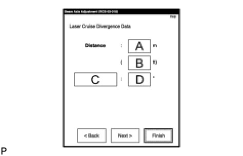 HINT: If the distance is 0 m (0 ft.), the sensor cannot detect the target. Reconfirm that there is no metal in the specified area in front of the vehicle (refer to the NOTICE at the beginning of this adjustment procedure).