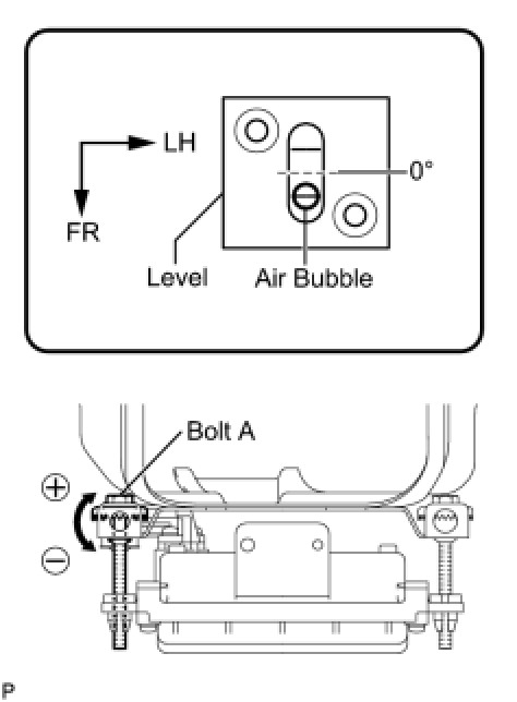 If the bubble is not within the red frame, use a screwdriver to adjust bolt A until the air bubble is within the red frame.