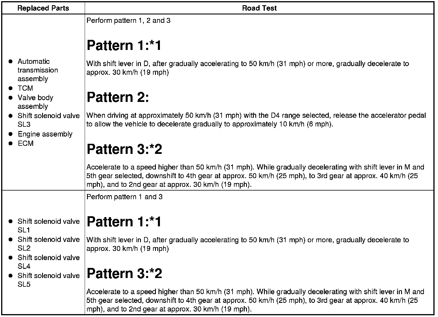 - *2: Accelerate the vehicle to a speed slightly higher than 50 km/h (31 mph).