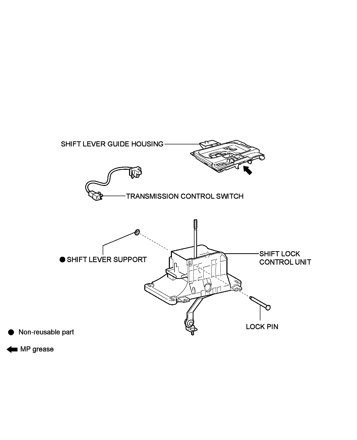 AA80E AUTOMATIC TRANSMISSION / TRANSAXLE: TRANSMISSION CONTROL SWITCH: COMPONENTS