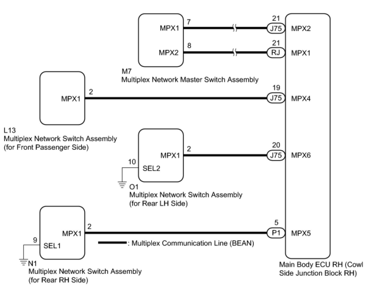 - Since the power window control system has functions that use multiplex communication (BEAN), first confirm that there is no malfunction in the multiplex communication system by inspecting the multiplex communication functions in accordance with the How to Proceed with Troubleshooting procedure How To Proceed With Troubleshooting. Then, conduct the following inspection procedure.