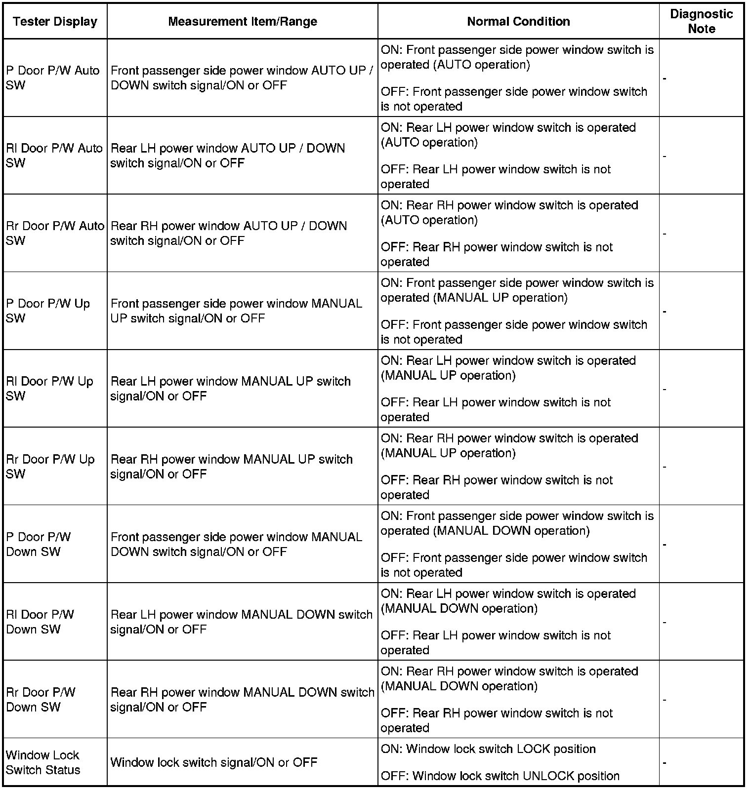 (a) Check that the front passenger side remote UP/DOWN function operates normally Component Tests and General Diagnostics.