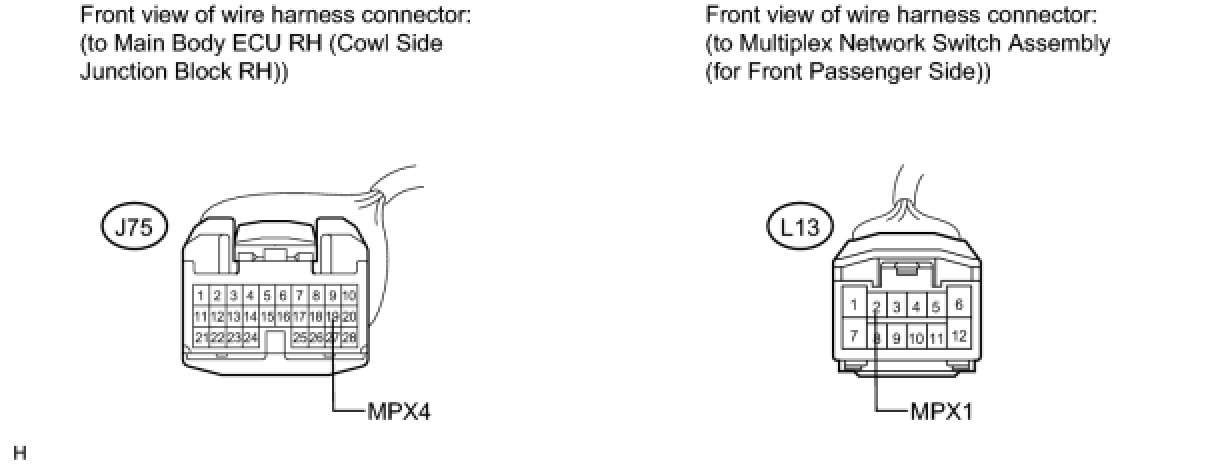 (b) Disconnect the multiplex network switch assembly (for rear RH side).