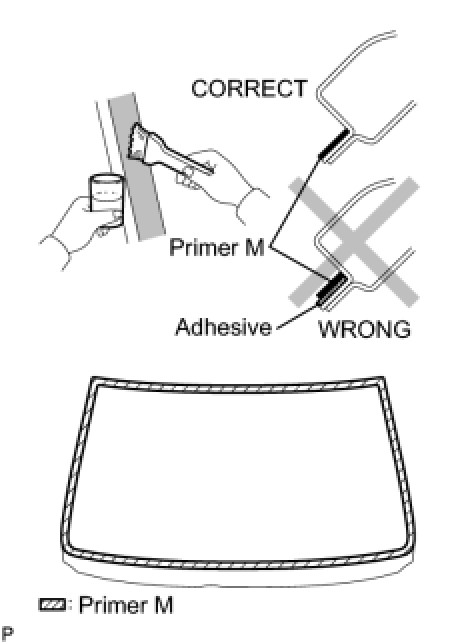 (a) Using a brush or sponge, coat the application area of the windshield glass adhesive dam with Primer G.