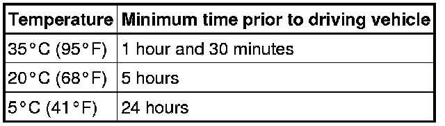 NOTICE: Do not drive the vehicle for the time described in the table below.
