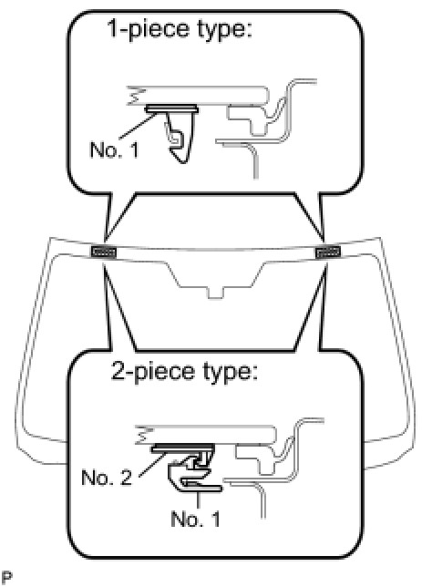 - There are No. 1 and No. 2 stoppers on the windshield glass as shown in the illustration. Be careful not to damage the windshield glass when cutting off the adhesive.