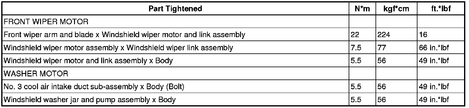 SPECIFICATIONS: WIPER / WASHER: TORQUE SPECIFICATIONS