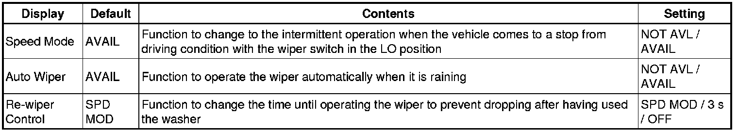 WIPER / WASHER: WIPER AND WASHER SYSTEM: CUSTOMIZE PARAMETERS