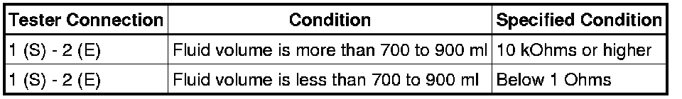 If the result is not as specified, replace the level warning switch assembly.