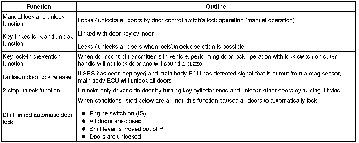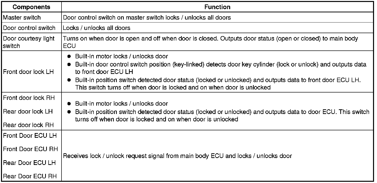 DOOR LOCK: POWER DOOR LOCK CONTROL SYSTEM: SYSTEM DESCRIPTION