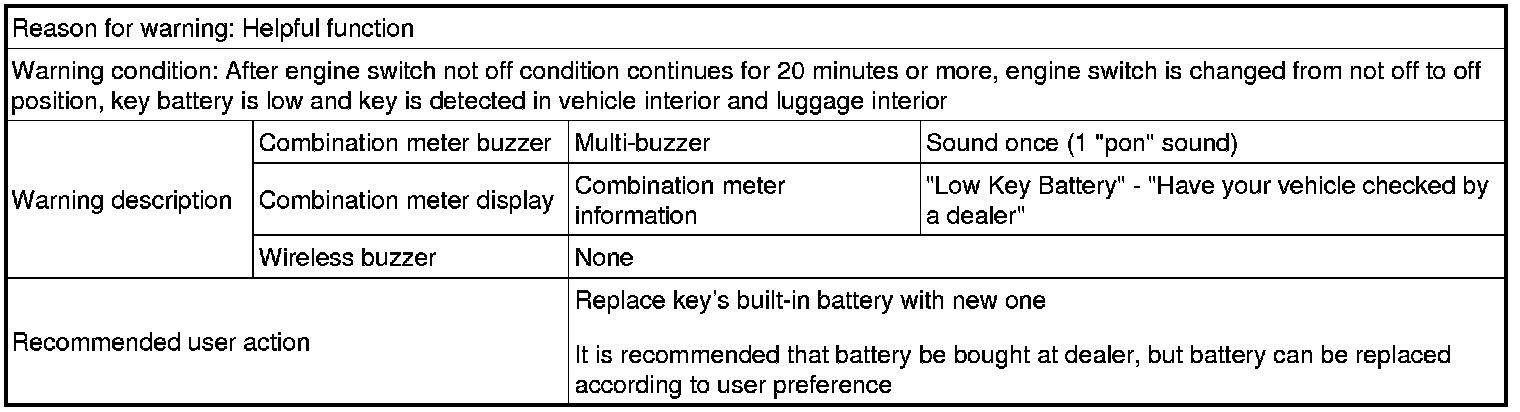 When any of the situations below occur, the smart access system with push-button start responds to alert the driver.