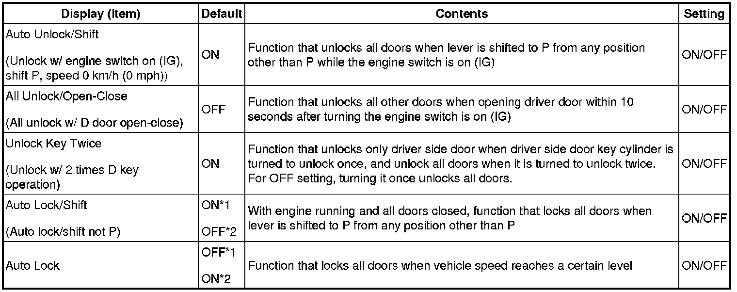 DOOR LOCK: POWER DOOR LOCK CONTROL SYSTEM: CUSTOMIZE PARAMETERS