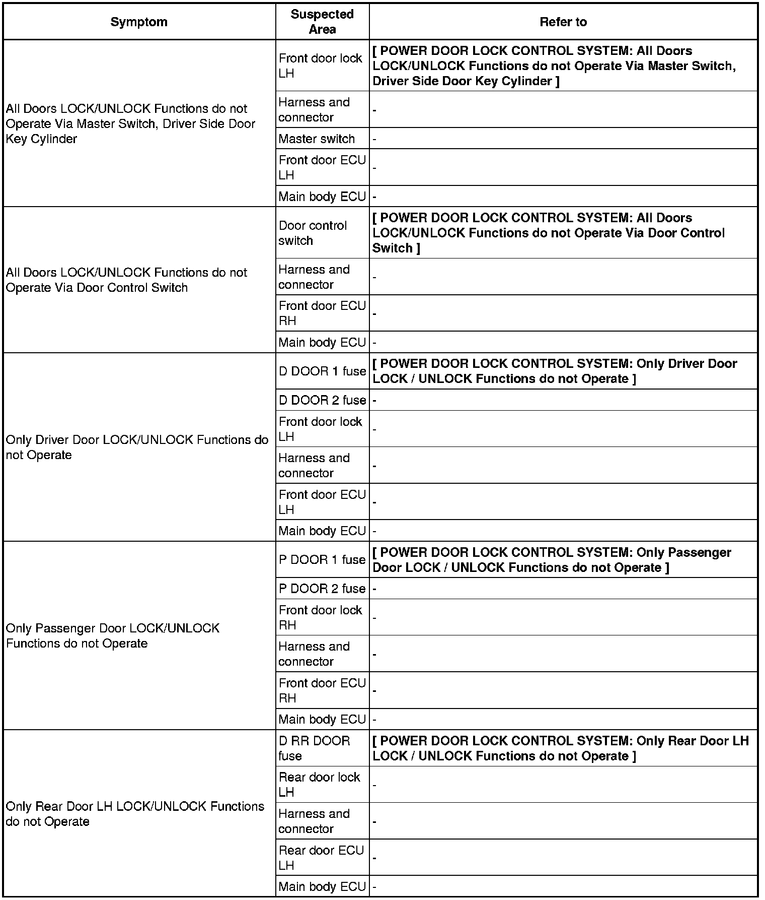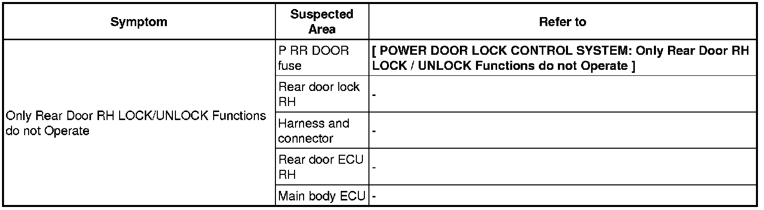 DOOR LOCK: POWER DOOR LOCK CONTROL SYSTEM: PROBLEM SYMPTOMS TABLE