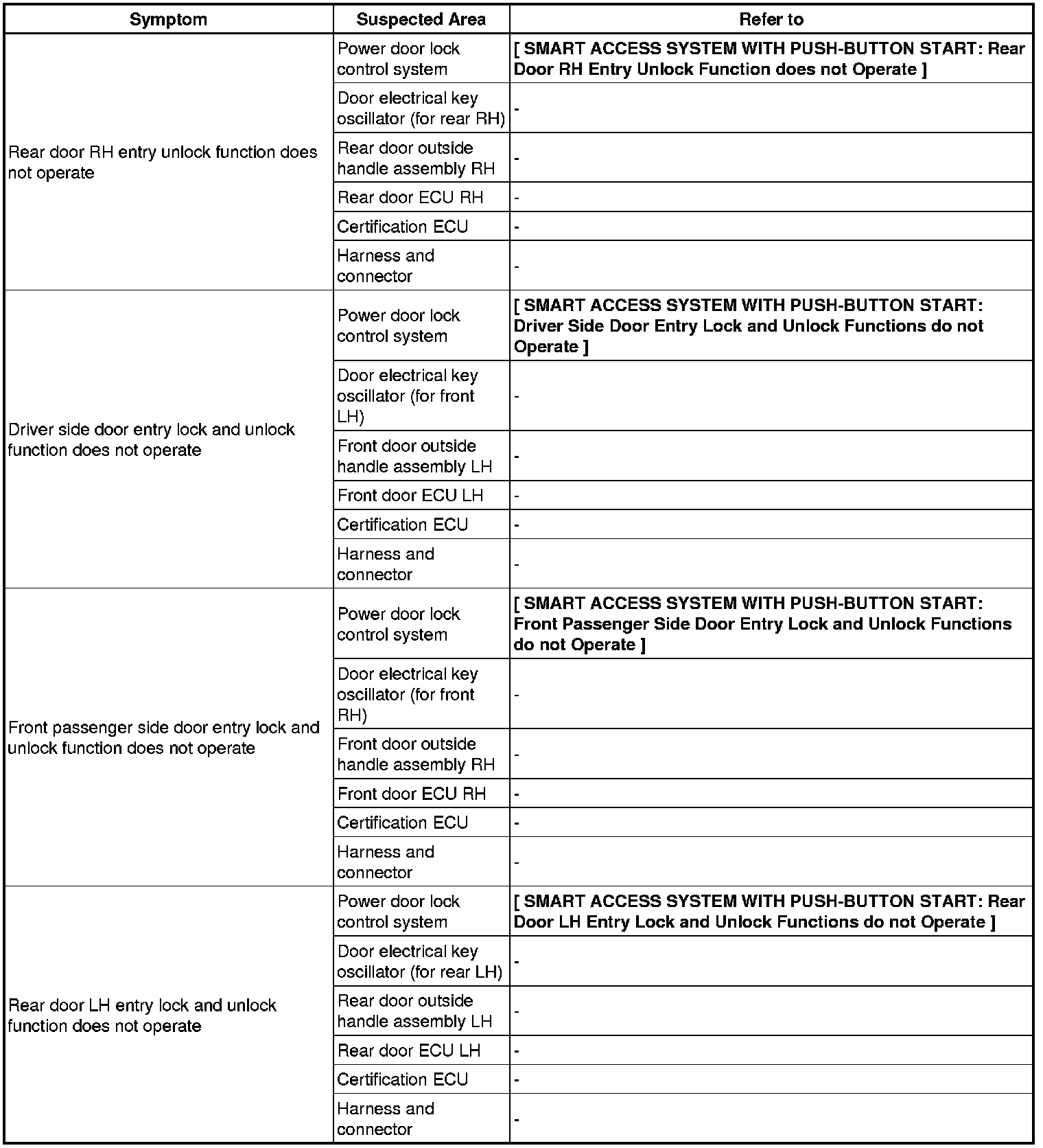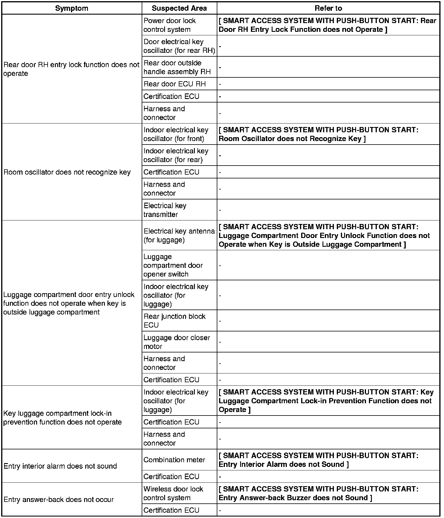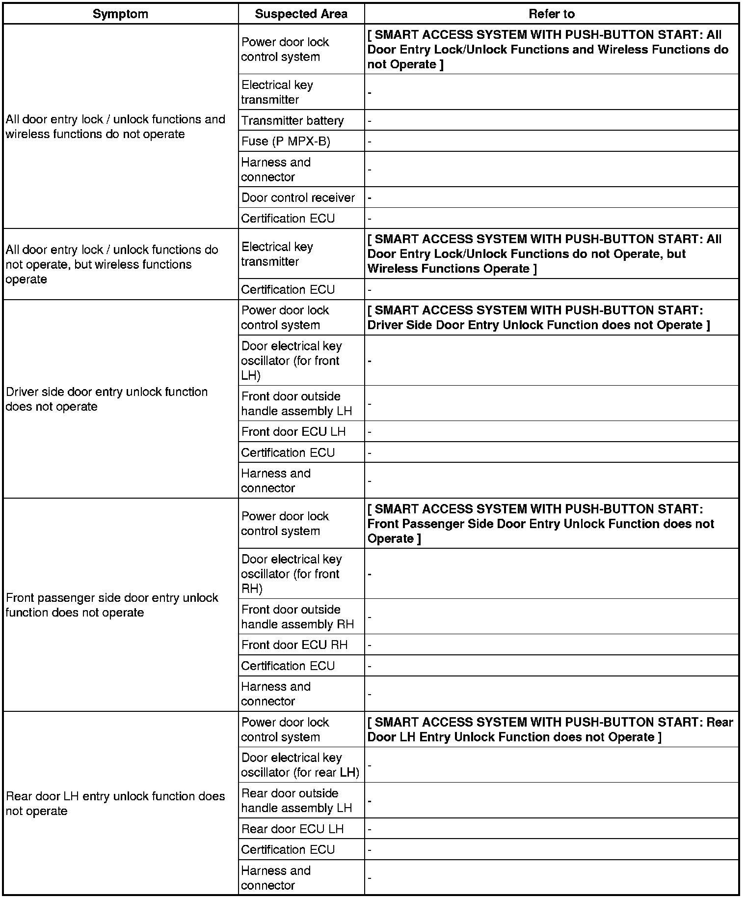 DOOR LOCK: SMART ACCESS SYSTEM WITH PUSH-BUTTON START: PROBLEM SYMPTOMS TABLE