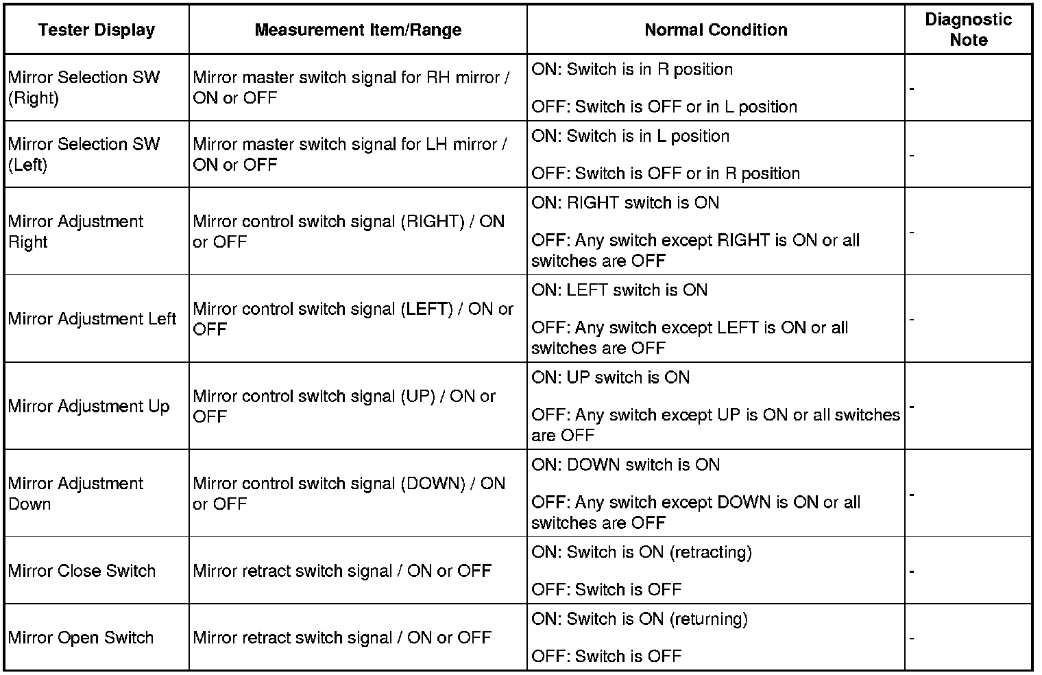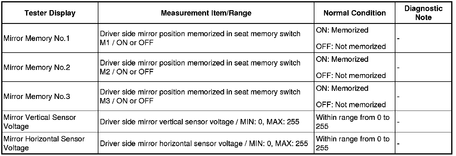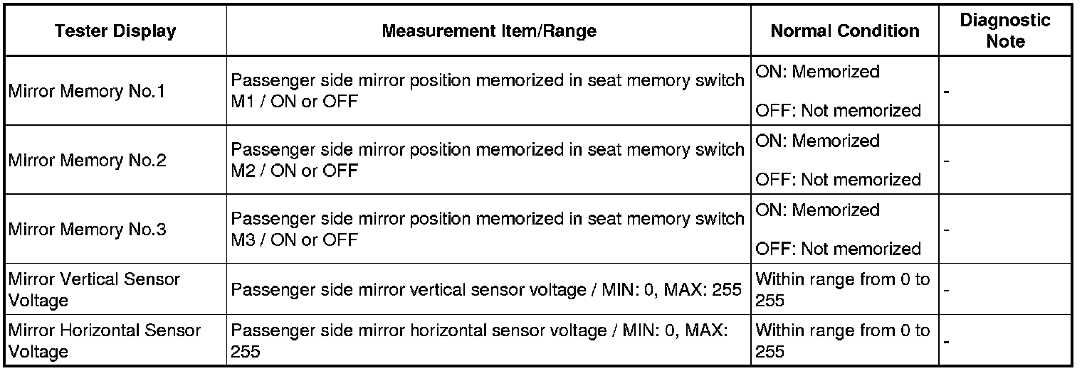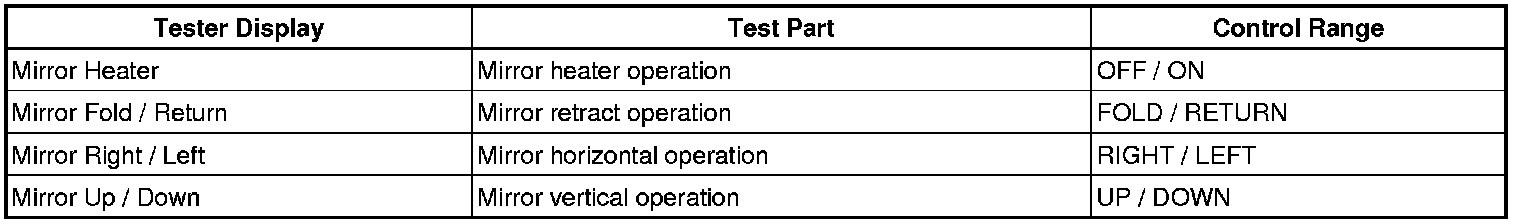 MIRROR: POWER MIRROR CONTROL SYSTEM: DATA LIST / ACTIVE TEST