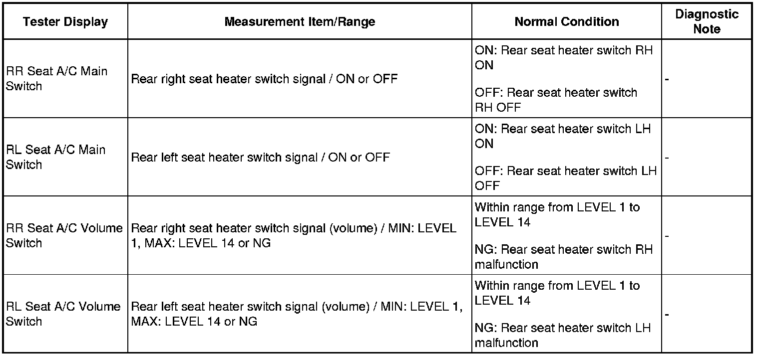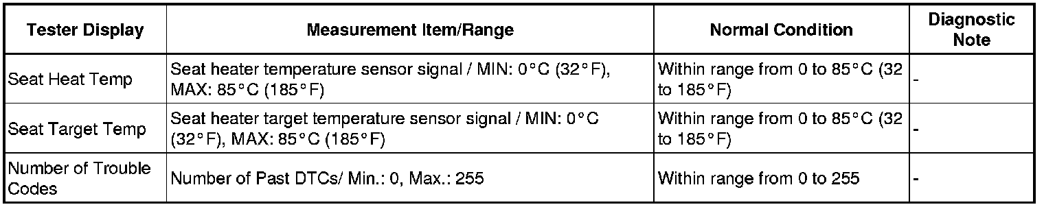 SEAT: SEAT HEATER SYSTEM: DATA LIST / ACTIVE TEST