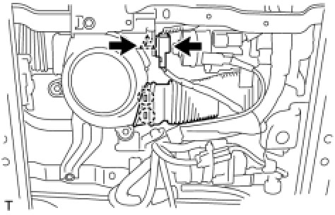 (4) Detach the 2 claws and disconnect the climate control controller duct.