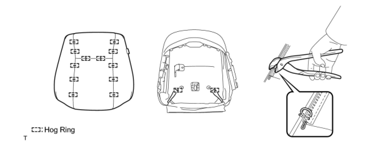 (a) Using hog ring pliers, install the seatback cover to the seatback pad with new hog rings.