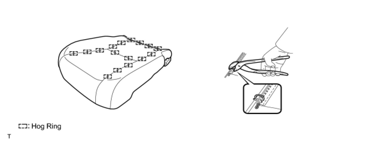 (a) Using hog ring pliers, install the seat cushion cover to the seat cushion pad with new hog rings.