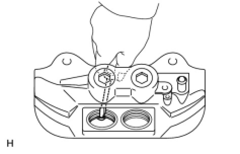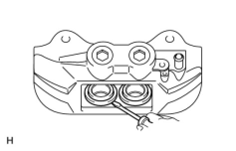 (e) Temporarily install the 2 disc brake pistons that were removed. Then install the disc brake pad to the side in which the 2 disc brake pistons were temporarily installed.
