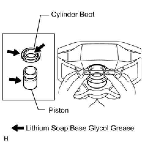(a) Apply lithium soap base glycol grease to the 2 rear disc brake pistons and 2 new cylinder boots.