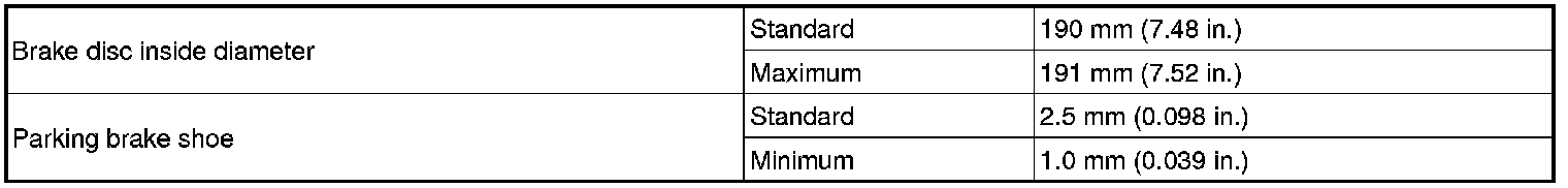 SERVICE SPECIFICATIONS: PARKING BRAKE: SERVICE DATA