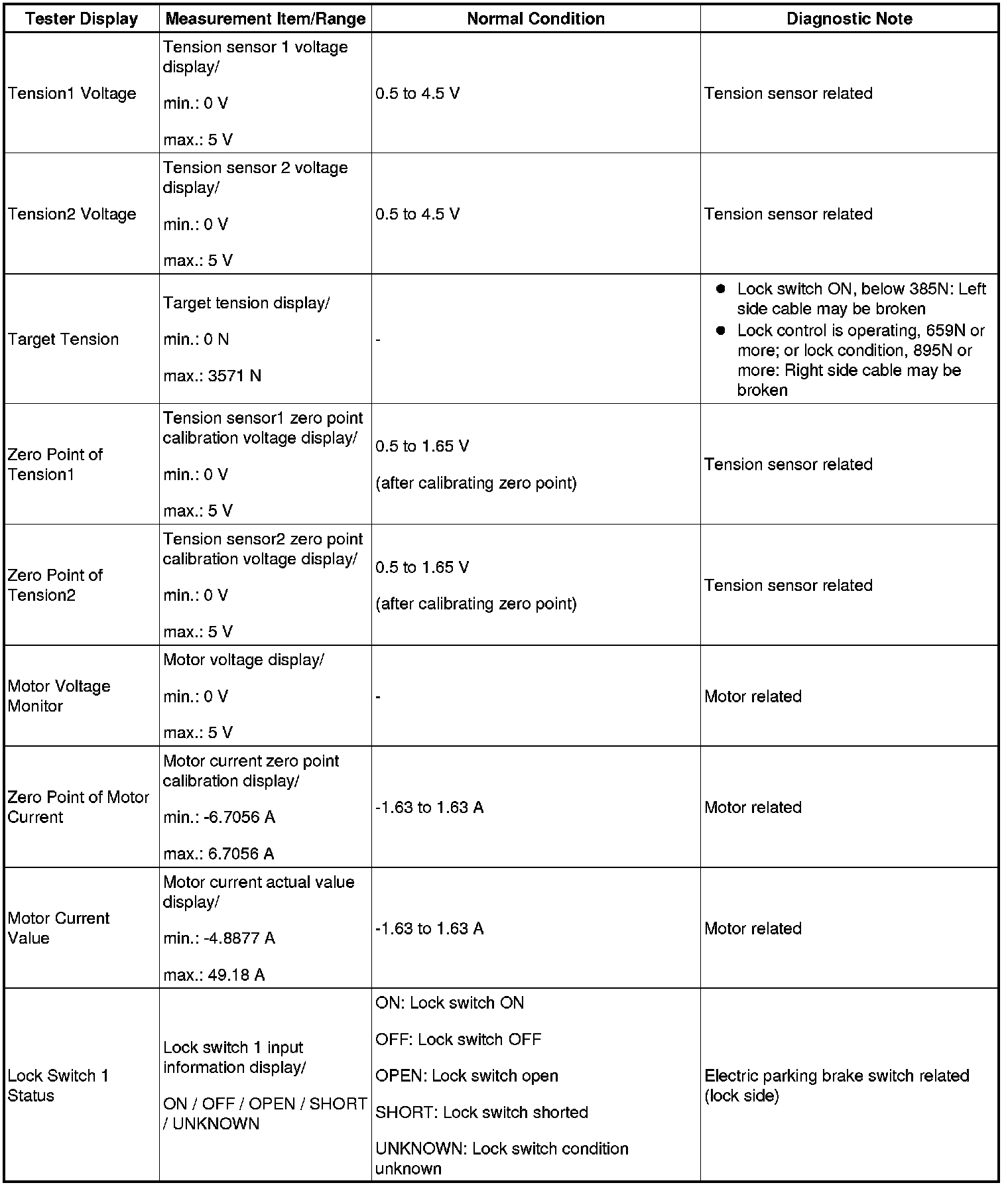 (e) Enter the following menus: Chassis / Electric Parking Brake / Data List.