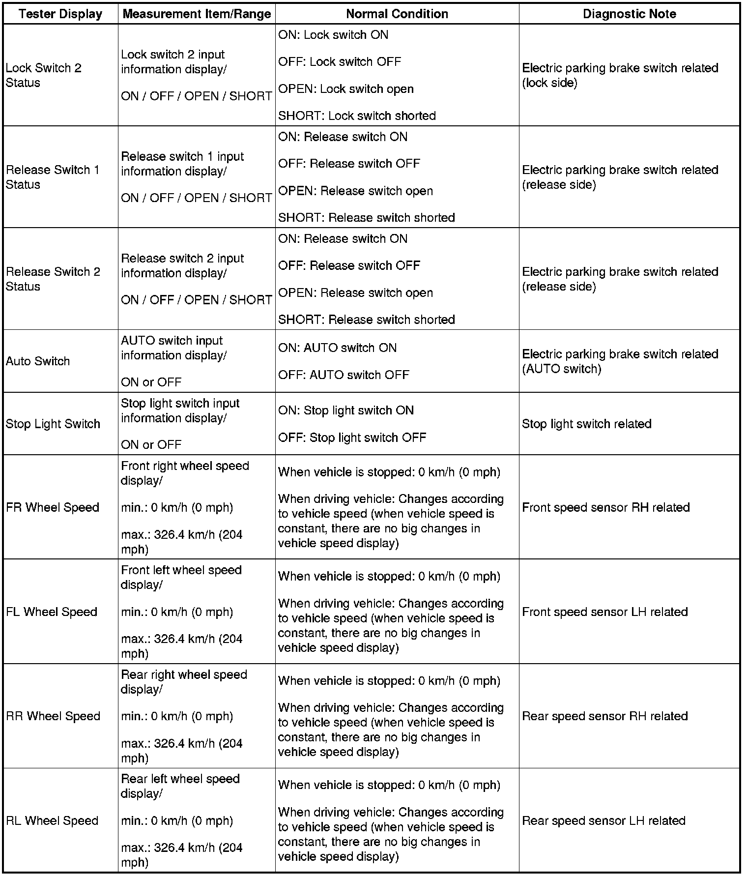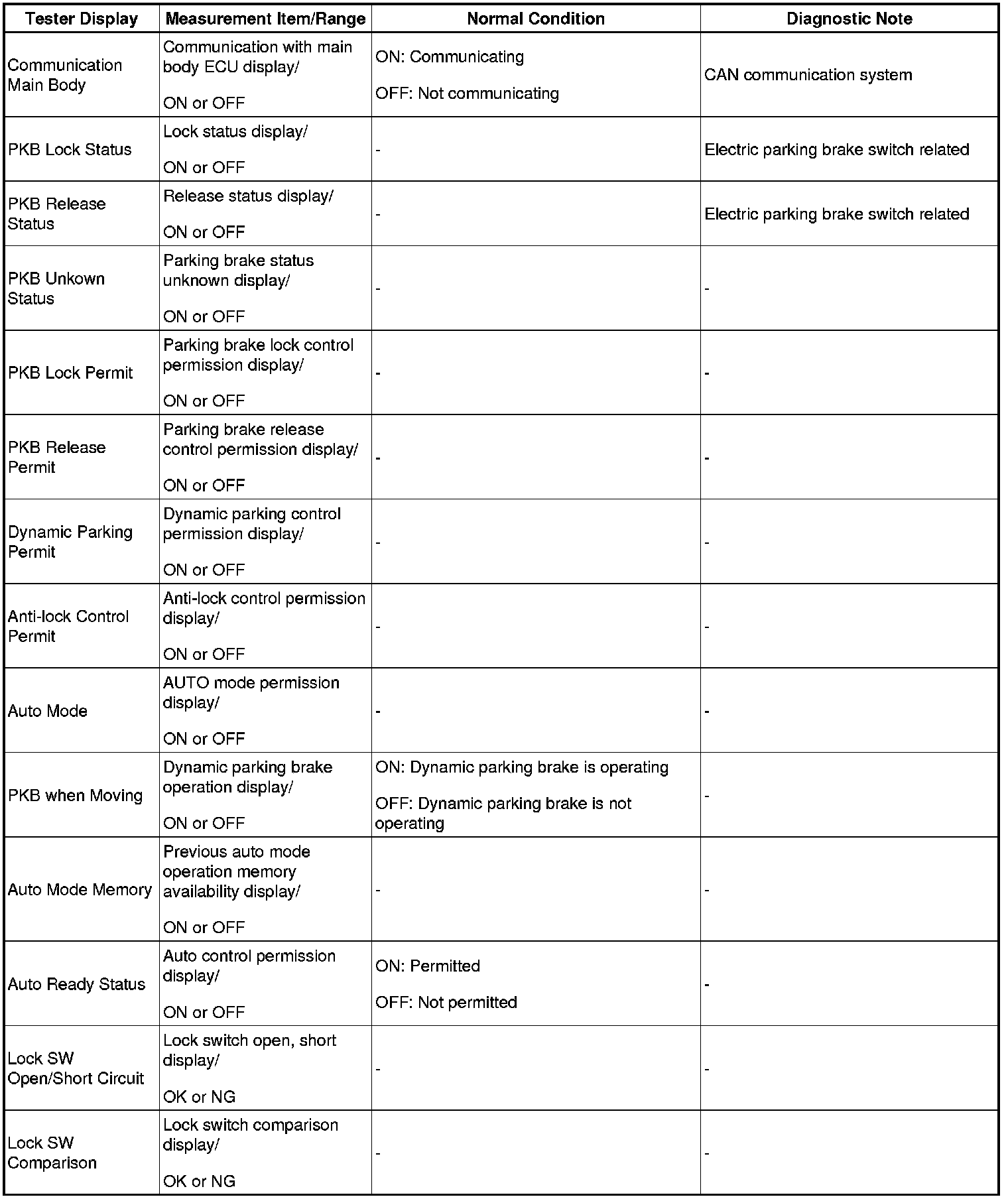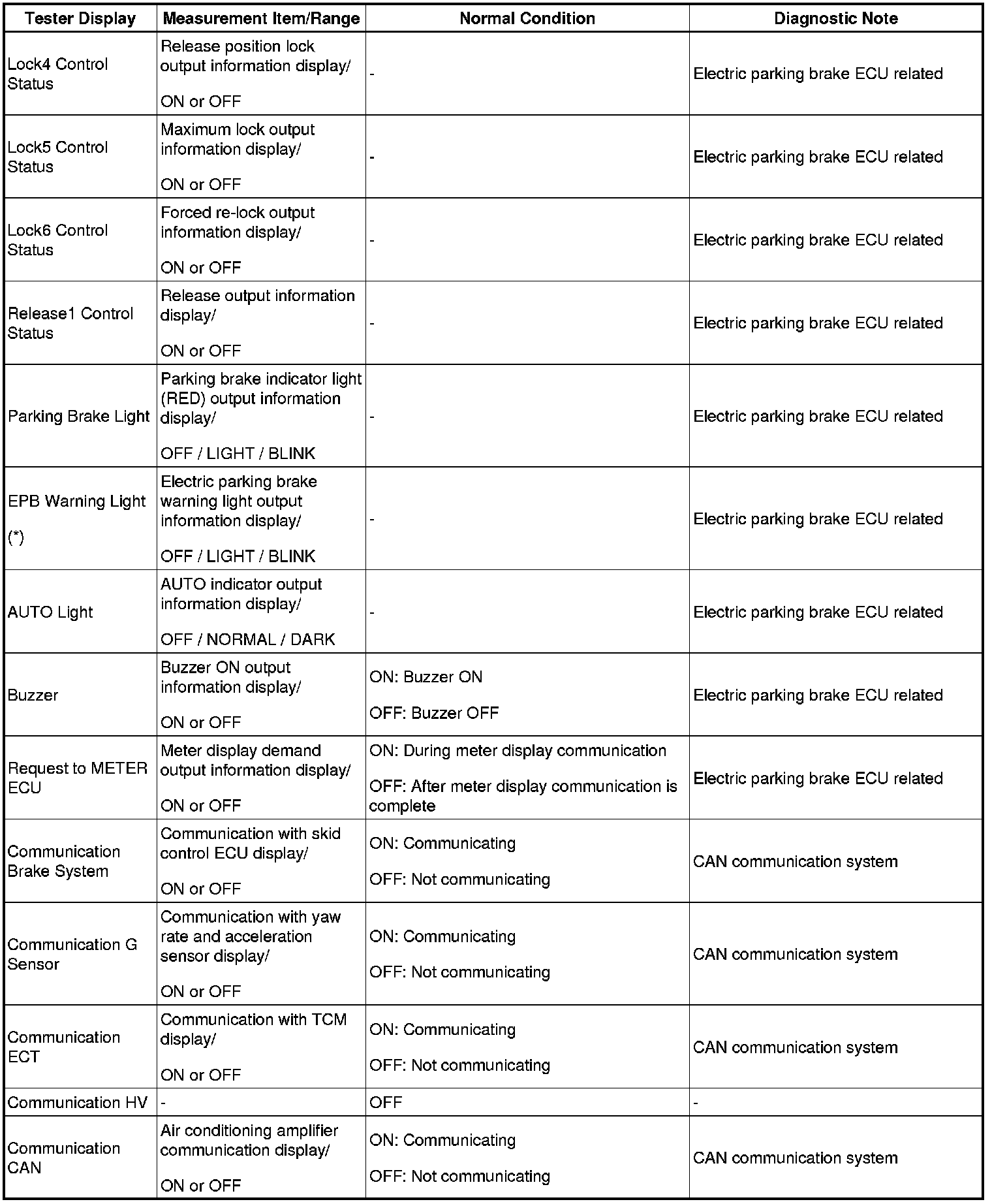 PARKING BRAKE: ELECTRIC PARKING BRAKE SYSTEM: DATA LIST / ACTIVE TEST