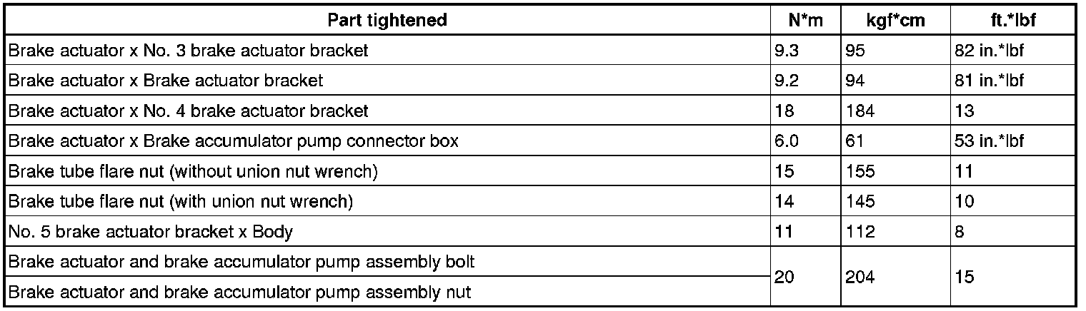 SERVICE SPECIFICATIONS: BRAKE CONTROL: TORQUE SPECIFICATIONS