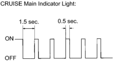 - If a malfunction occurs in the vehicle speed sensors, the stop light switch, or other related parts during cruise control driving, the ECU actuates AUTO CANCEL of the cruise control and blinks the CRUISE main indicator light. This indicator light informs the driver of the malfunction. At the same time, the malfunction is stored as a diagnostic trouble code.