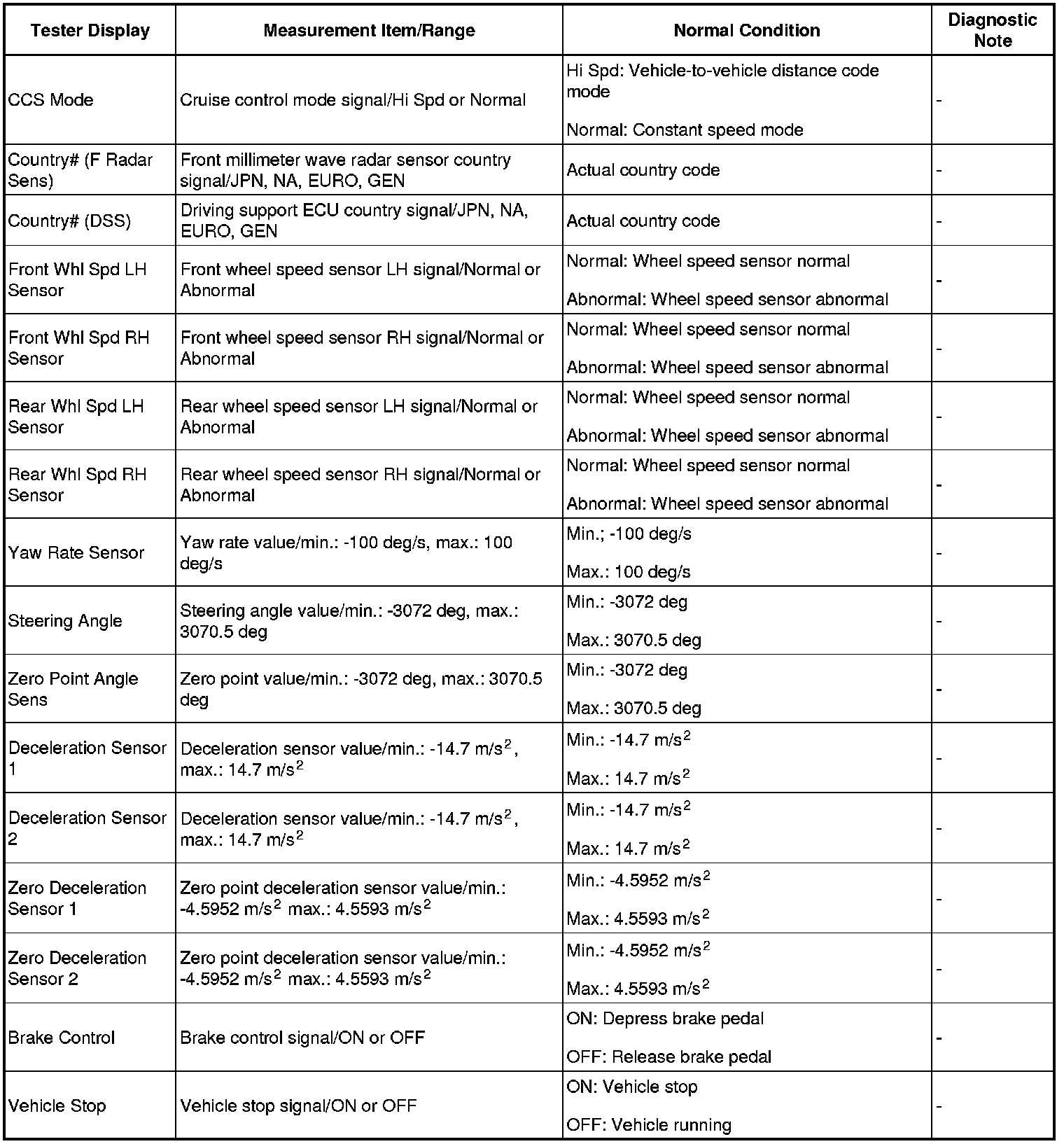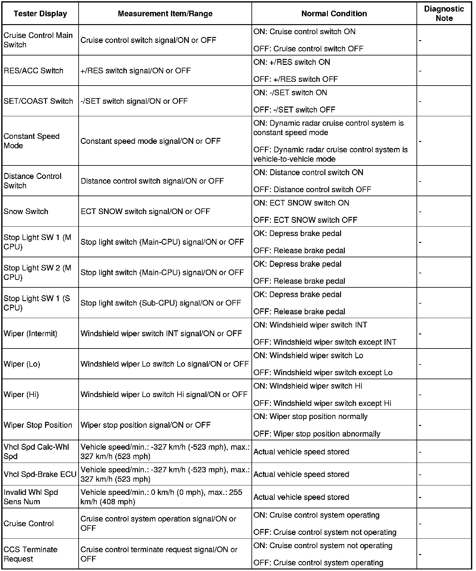 CRUISE CONTROL: DYNAMIC RADAR CRUISE CONTROL SYSTEM: DATA LIST / ACTIVE TEST
