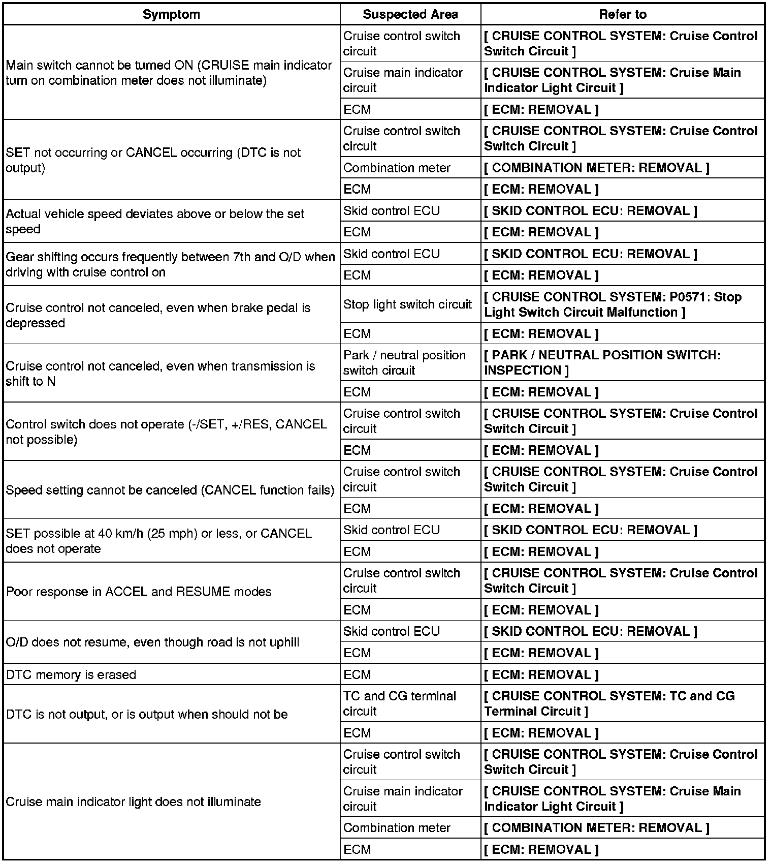 CRUISE CONTROL: CRUISE CONTROL SYSTEM: PROBLEM SYMPTOMS TABLE