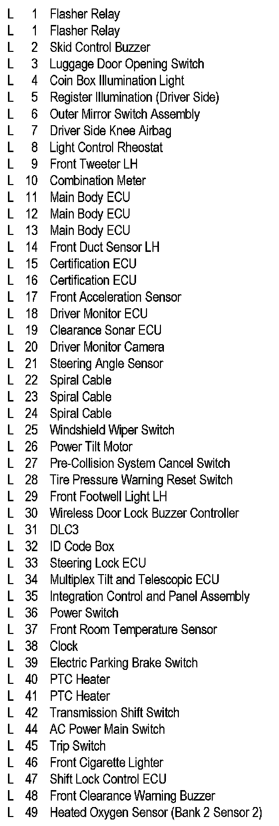 Position of Parts In Instrument Panel