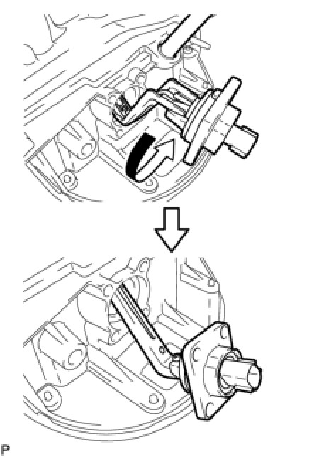 (c) Rotate the engine oil level sensor 180° and remove it.