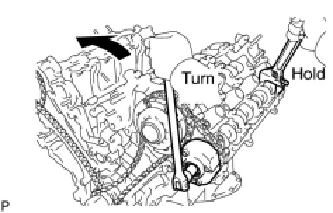 (b) Rotate the crankshaft clockwise so that the timing marks on the crankshaft timing gear and camshaft timing gears are as shown in the illustration.