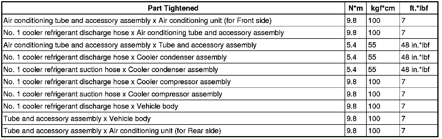 SERVICE SPECIFICATIONS: AIR CONDITIONING: TORQUE SPECIFICATIONS