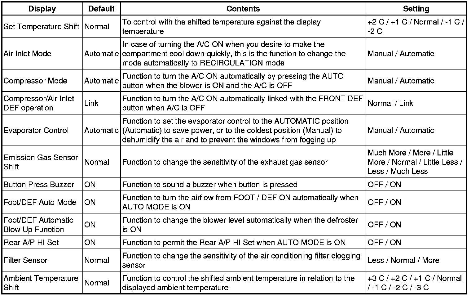 AIR CONDITIONING: AIR CONDITIONING SYSTEM: CUSTOMIZE PARAMETERS