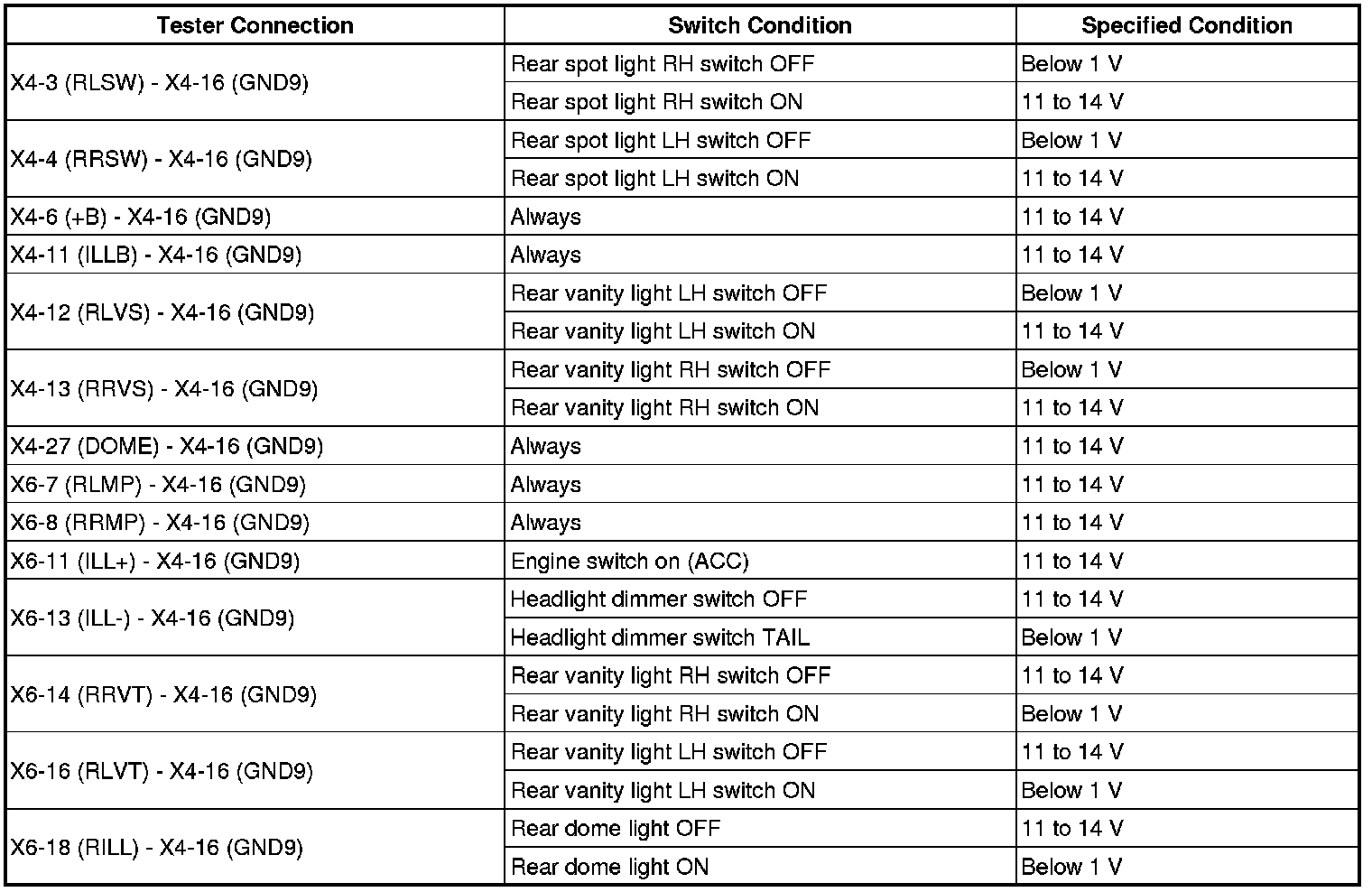 (b) Measure the voltage according to the value(s) in the table below.