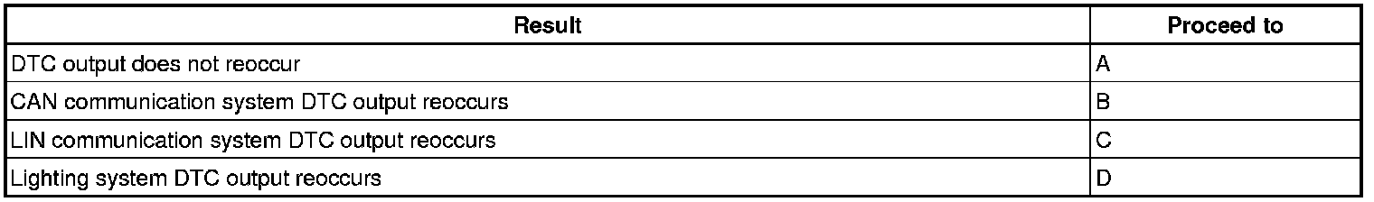 (c) Recheck for DTCs. Based on the DTCs output above, try to cause the output of the same CAN communication system DTC, LIN communication DTC or lighting system DTC by simulating the symptoms indicated by the DTC.