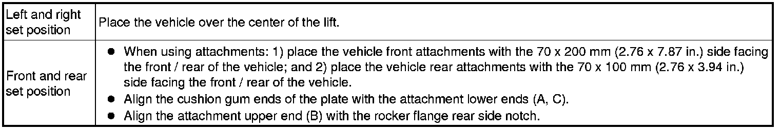 (d) When using the lift, its center should be as close to the vehicle's center of gravity as possible (length of "L" in the illustration should be as short as possible).
