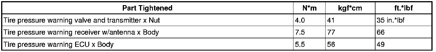 SERVICE SPECIFICATIONS: TIRE AND WHEEL: TORQUE SPECIFICATIONS