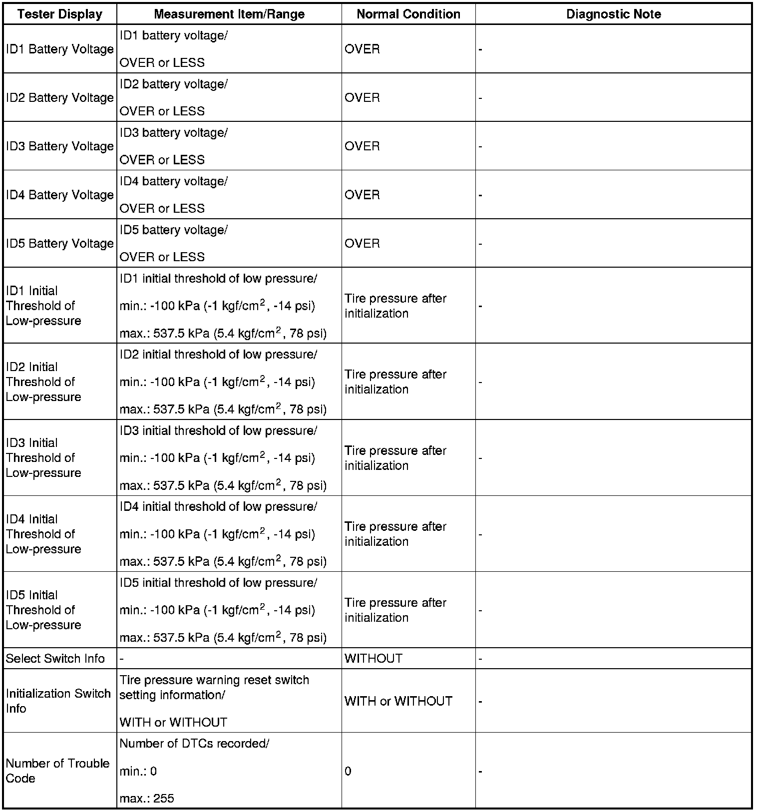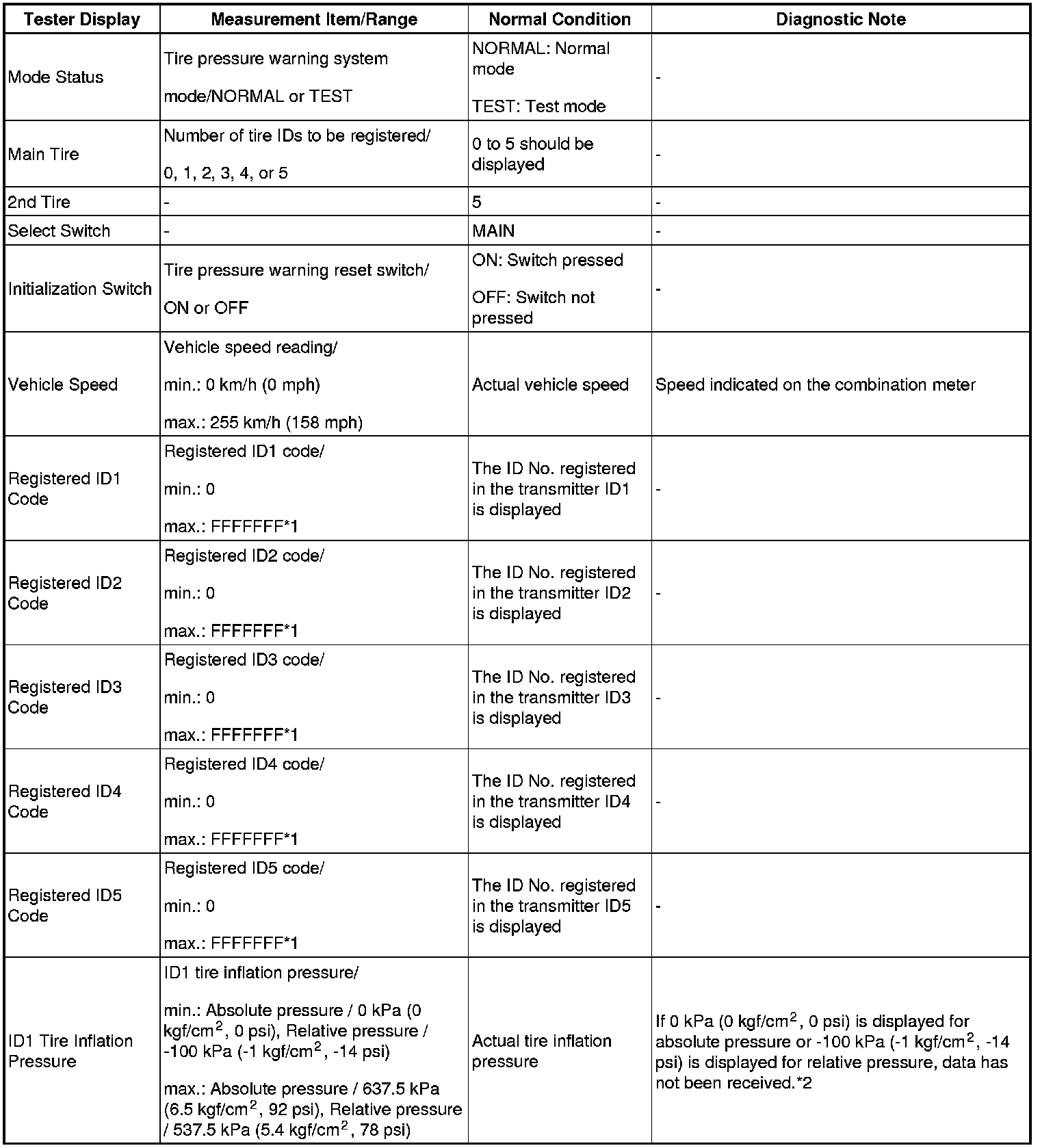 TIRE AND WHEEL: TIRE PRESSURE WARNING SYSTEM: DATA LIST / ACTIVE TEST