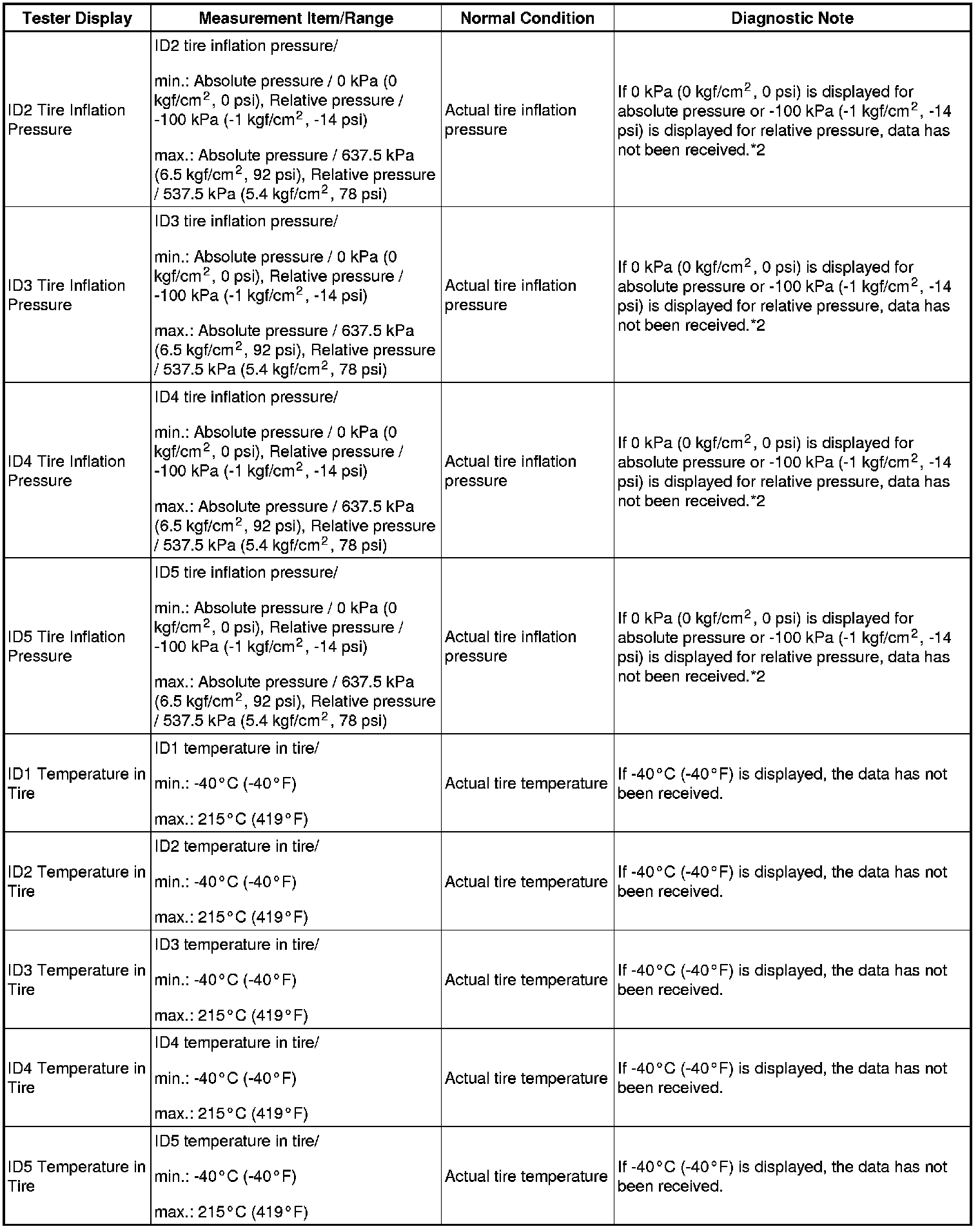 *2: It may take about 2 or 3 minutes until the values are displayed. If the values are not displayed after a few minutes, perform troubleshooting according to the inspection procedure for DTCs C2121/21 to C2125/25 C2121.