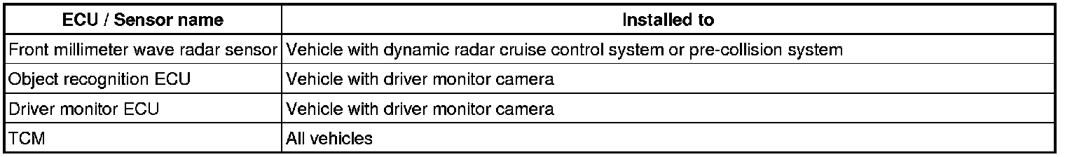 (a) System (ECUs and sensors) that use CAN communication vary depending on the vehicle's optional settings. Check which systems (ECUs and sensors) are installed on the vehicle.