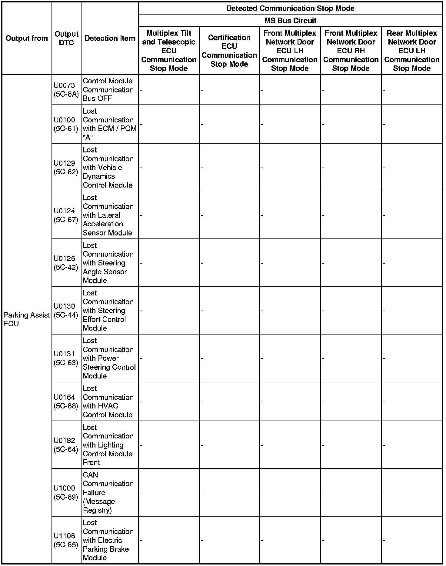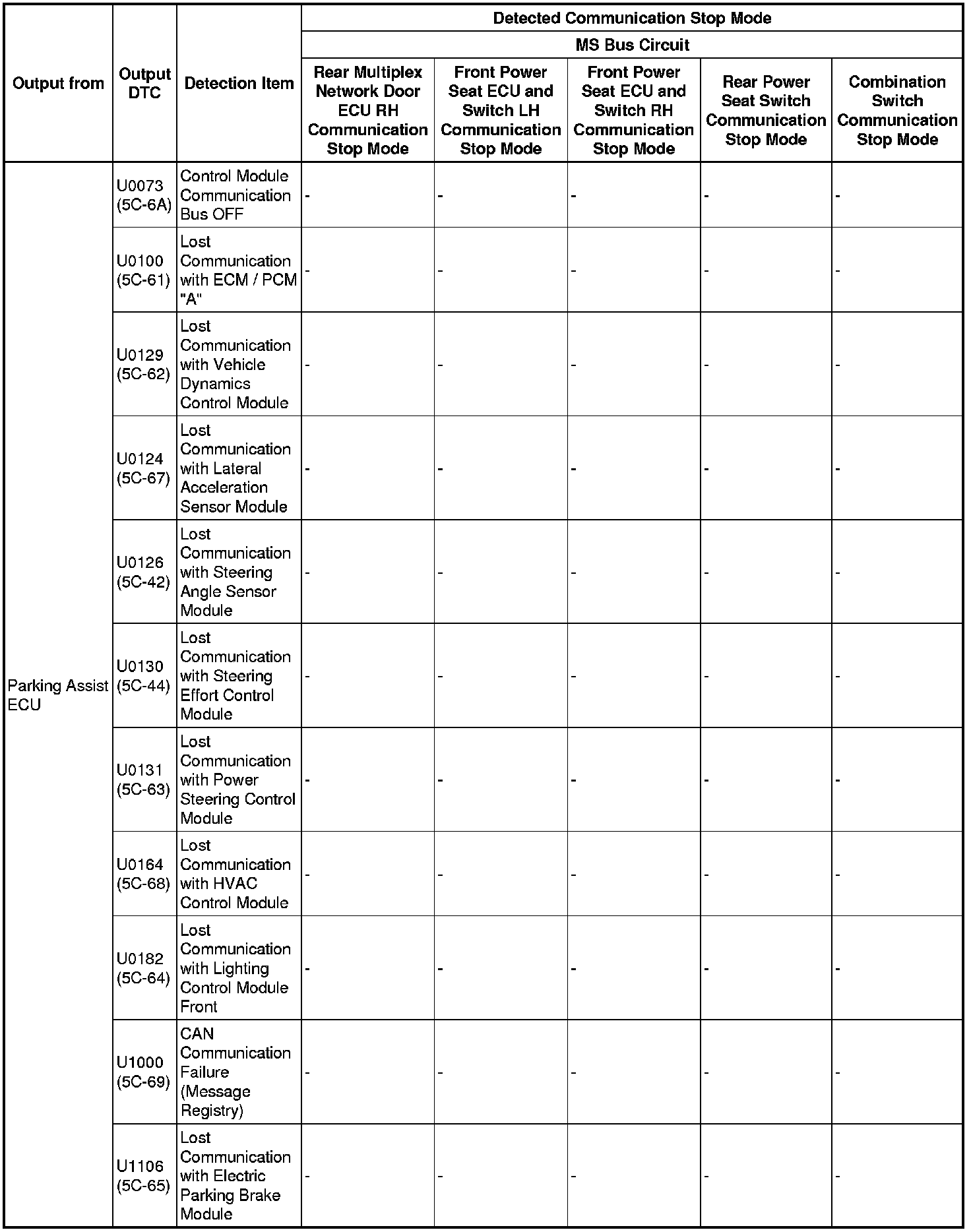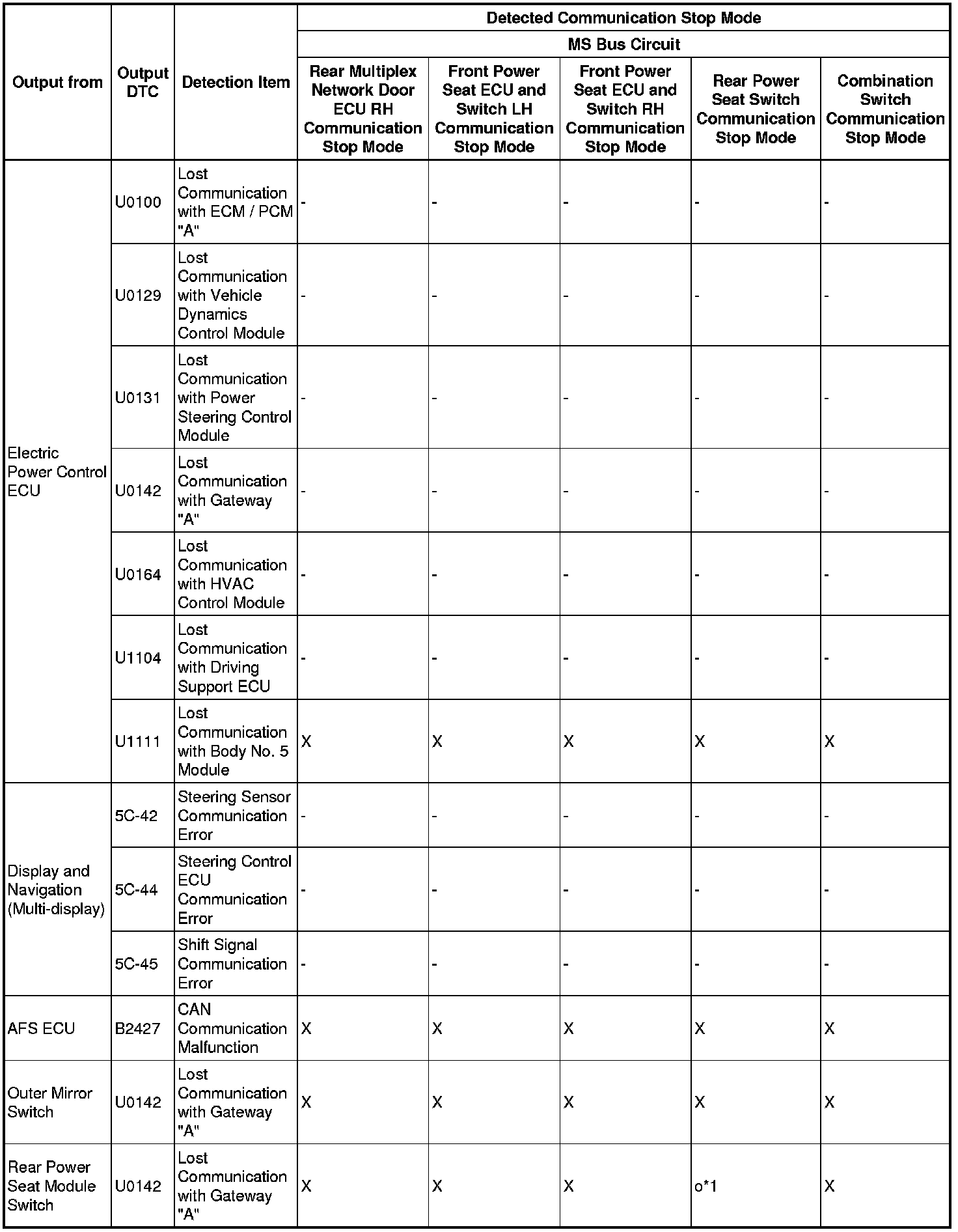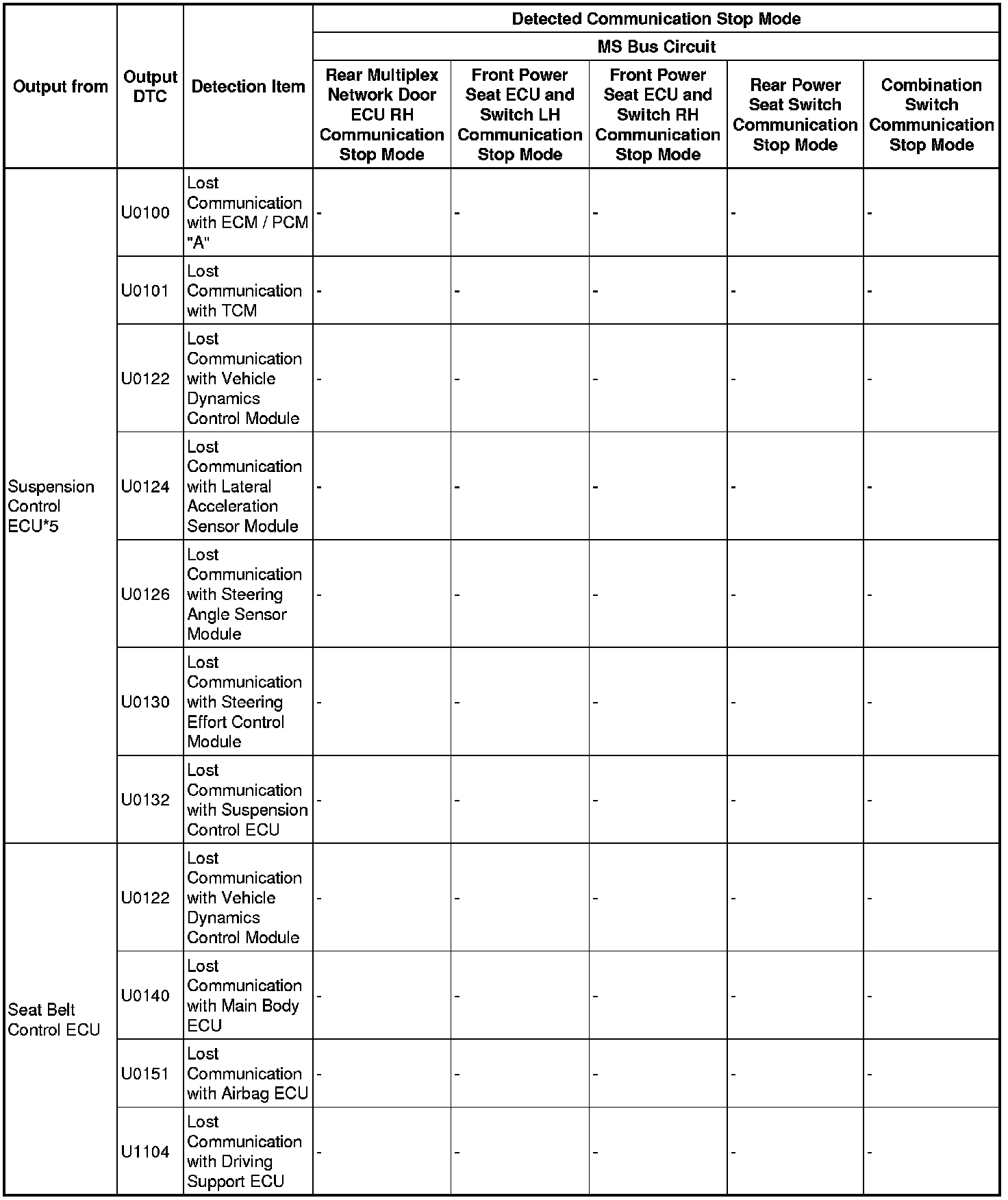 - *5: Only present DTCs output.