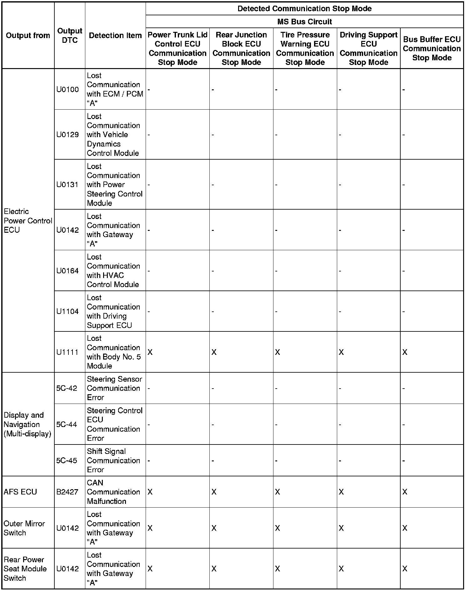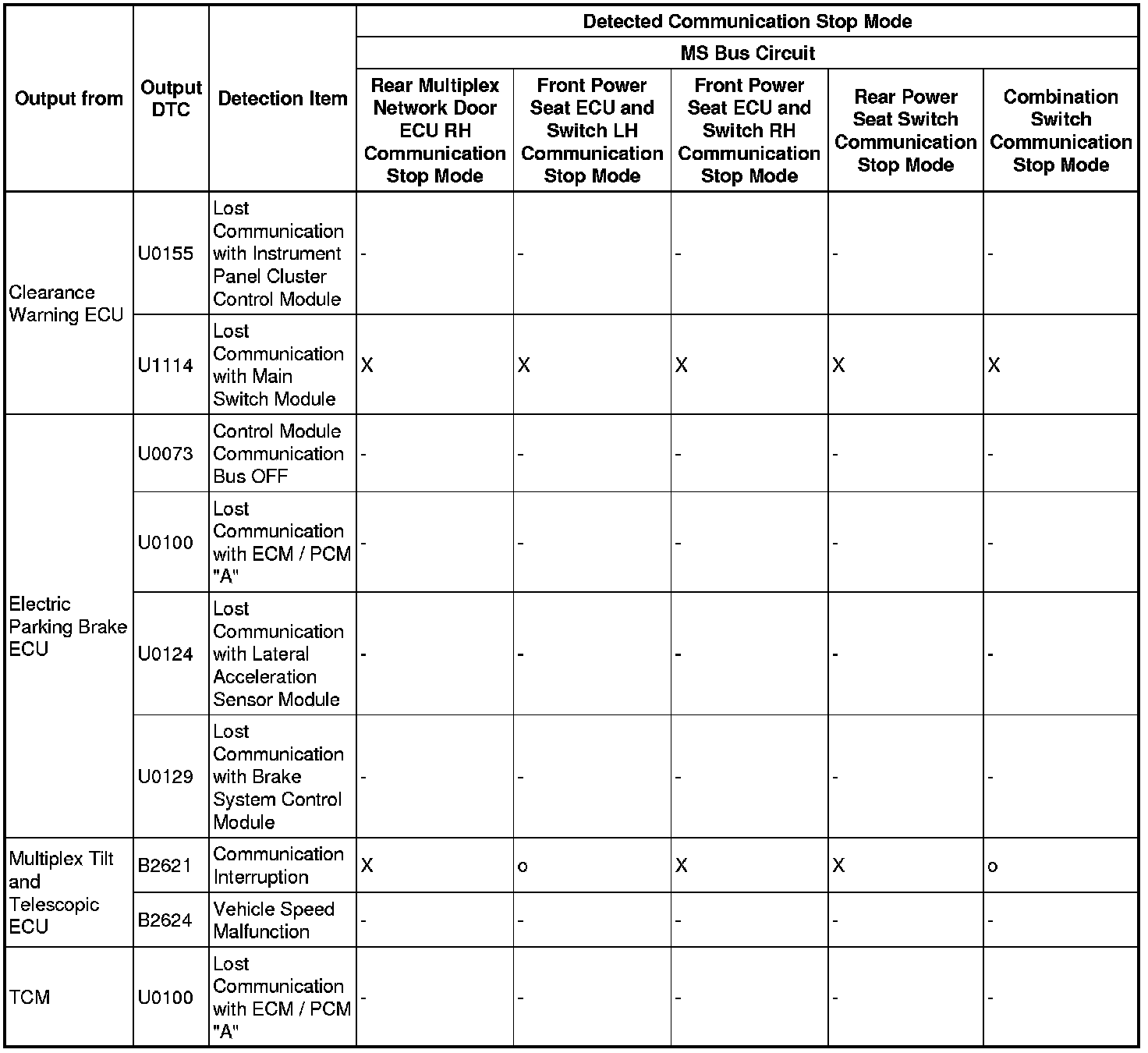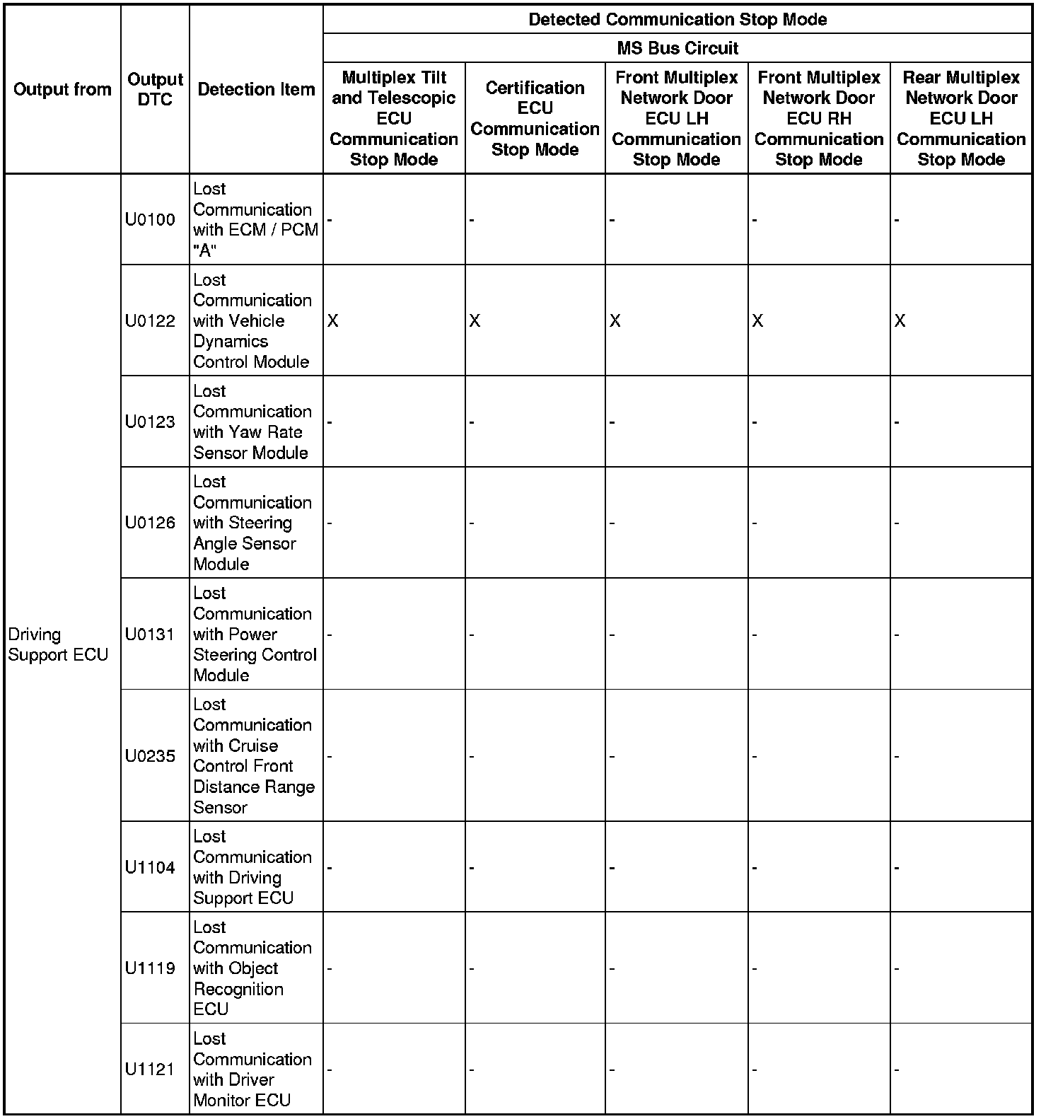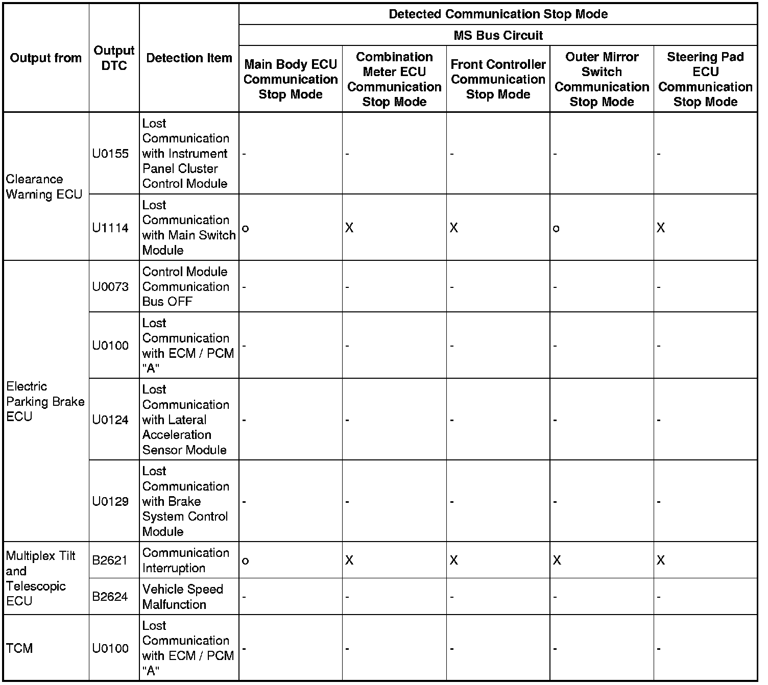 - *5: Only present DTCs output.