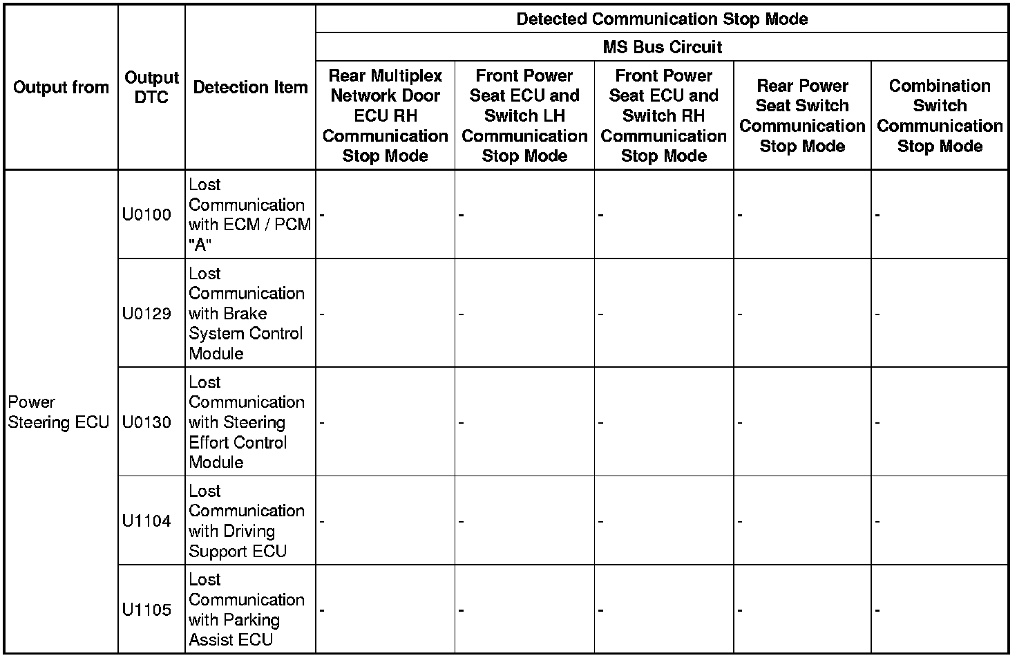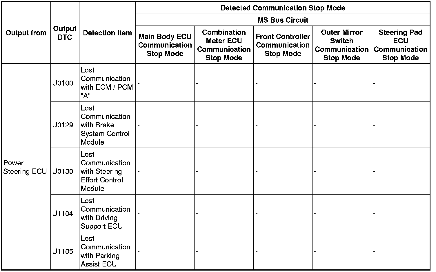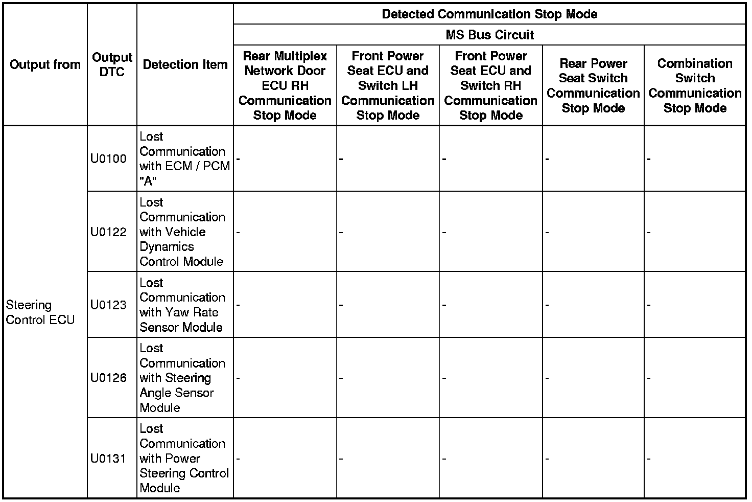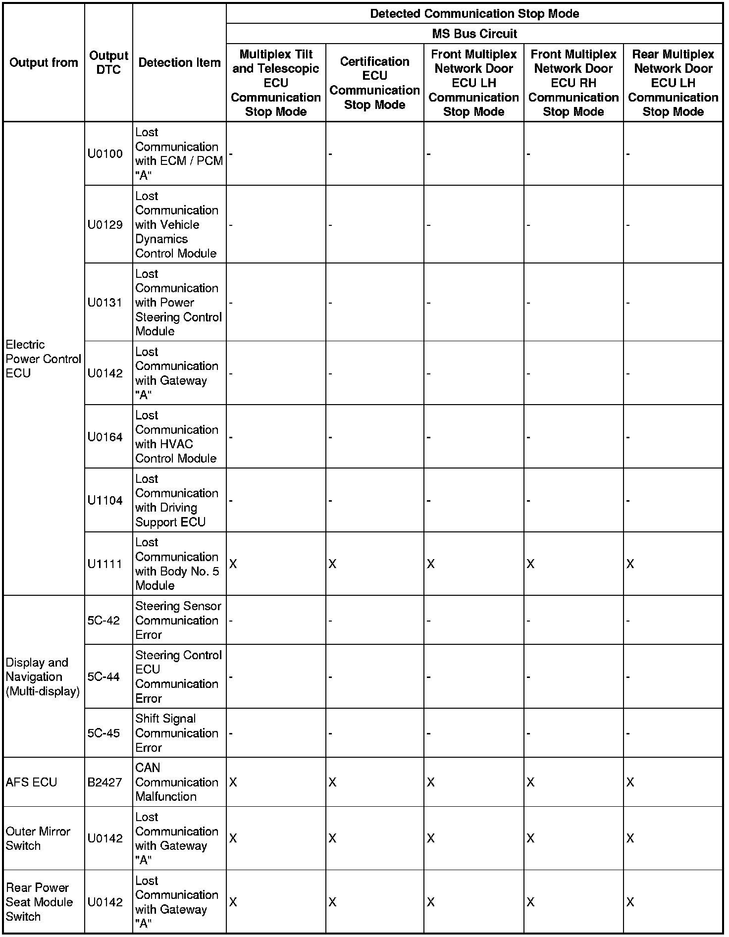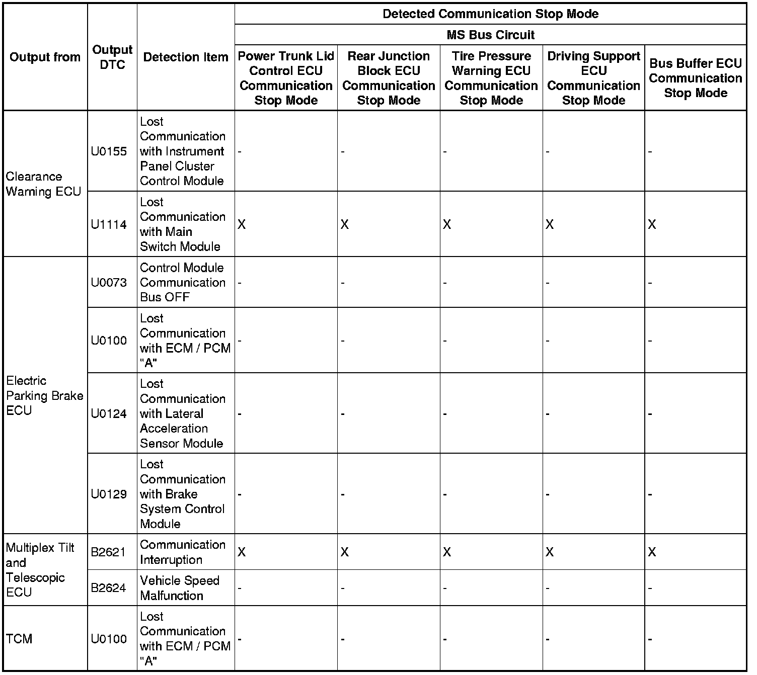 - *5: Only present DTCs output.