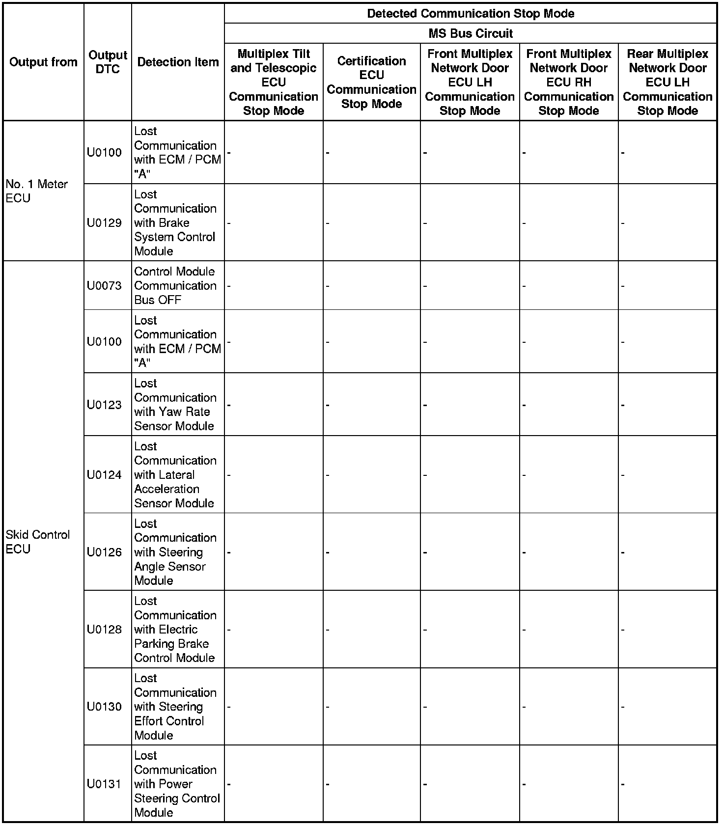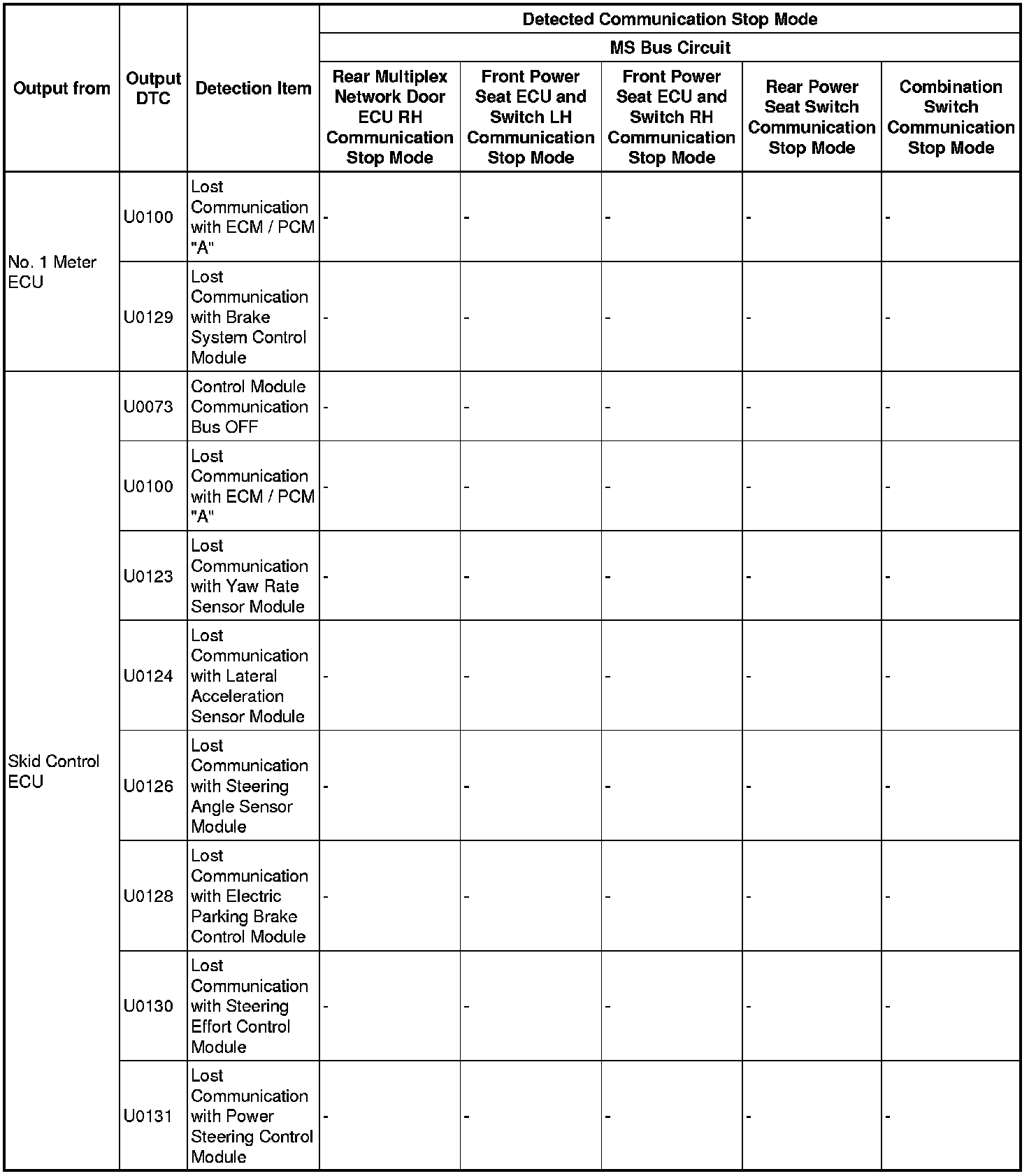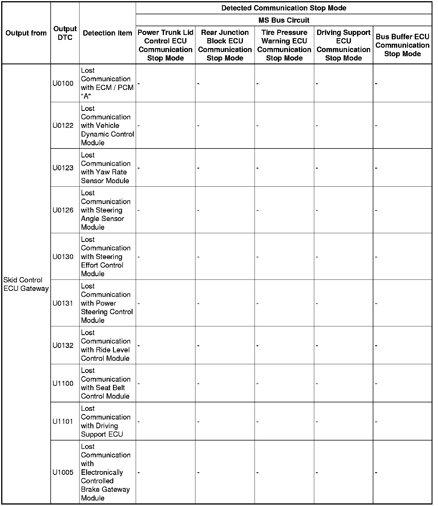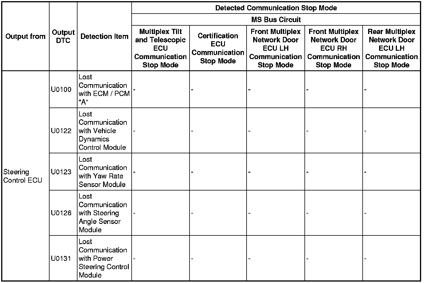 - *5: Only present DTCs output.