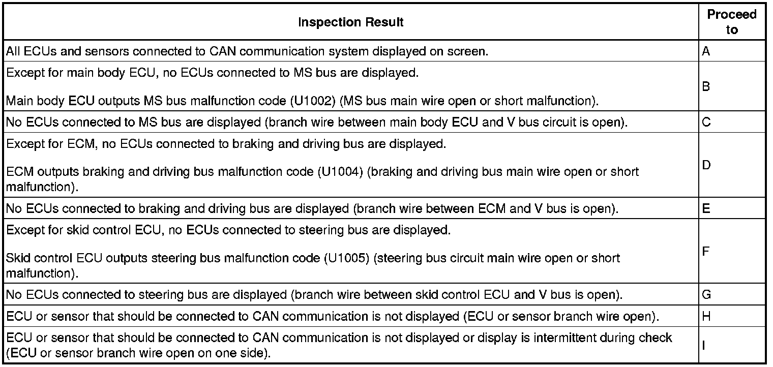 - The main body ECU checks for proper ECU communication for ECUs that are connected to the CAN MS bus circuit, and the results are displayed on the Techstream.
