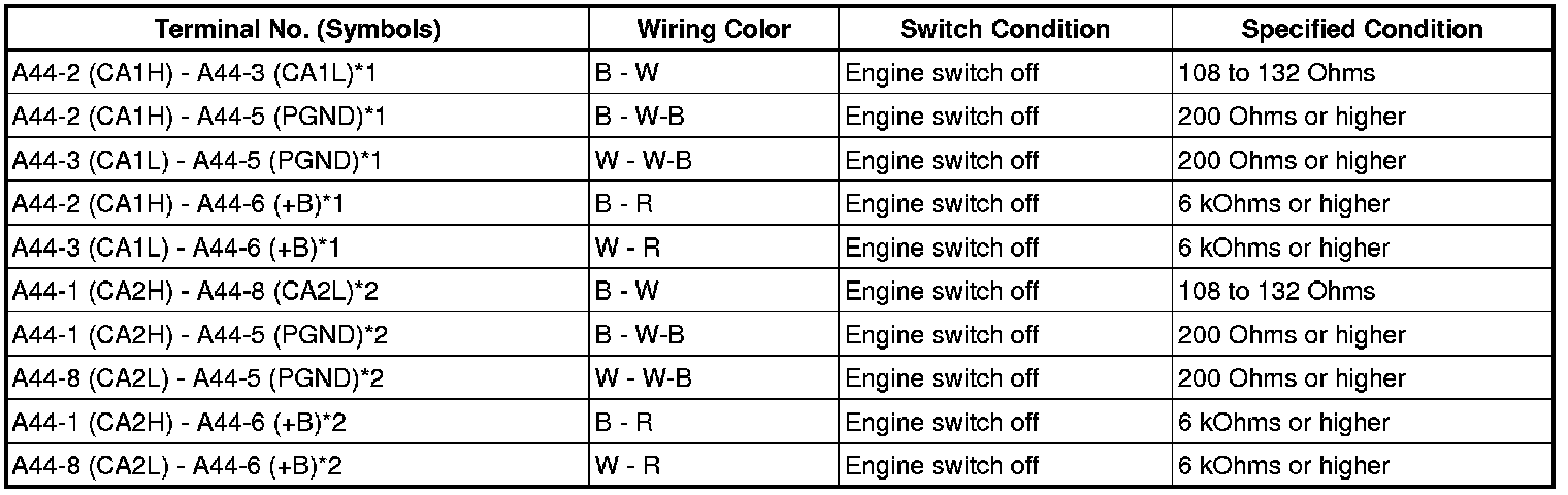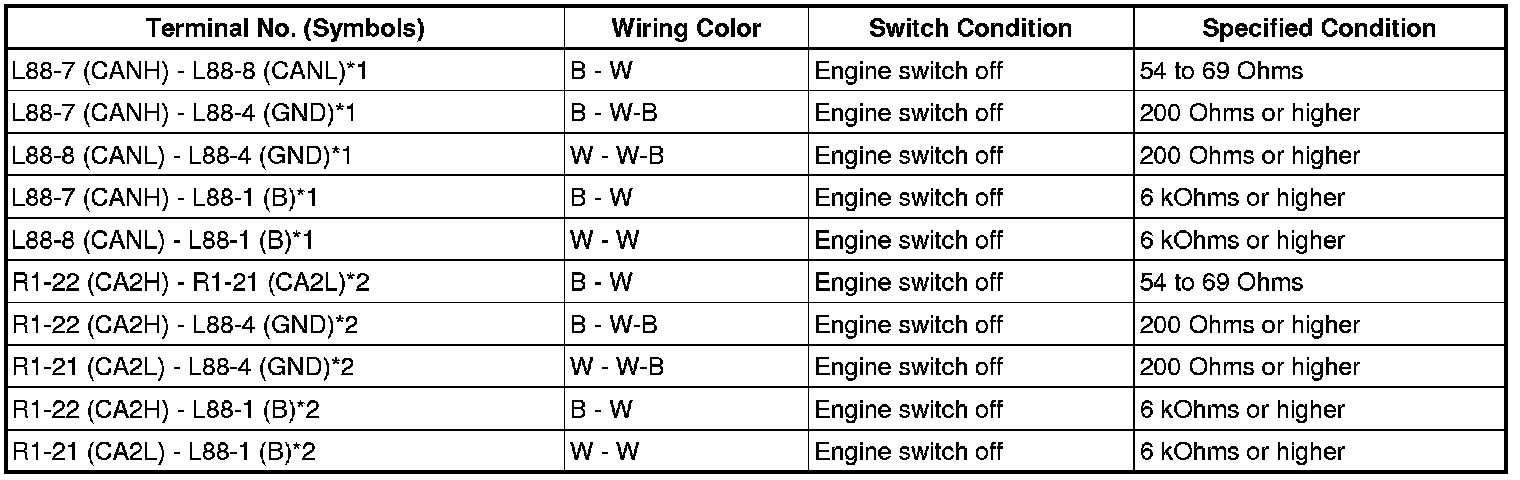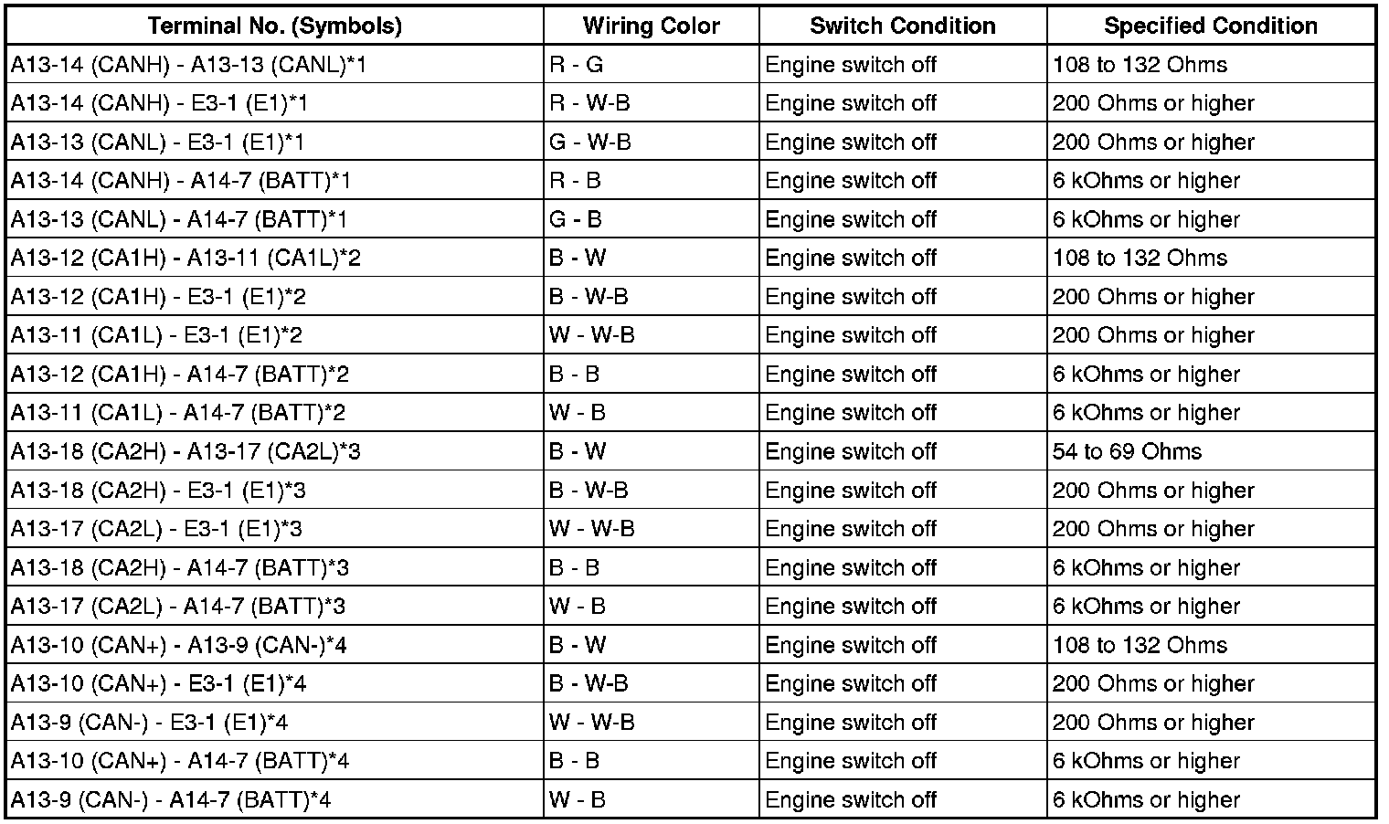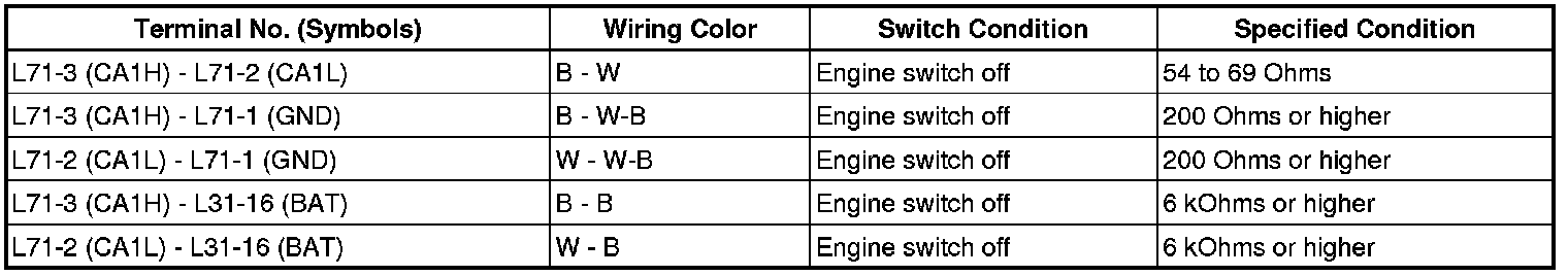 HINT: Operating the engine switch, any switches or any doors triggers related ECU and sensor communication with the CAN, which causes resistance variation.